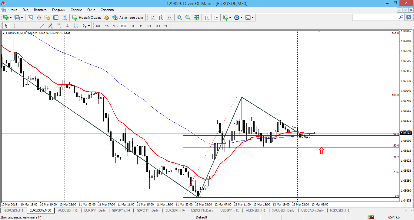 мы не суеверный народ и то, что сегодня пяница, 13-ое, не может оттолкнуть нас от работы...Хотя и можно отдохнуть, неделя выдалась сложной и нервной. Итак: пара вчера прилично прыгнула вверх. Максимум был на 1.0681, но даже вчерашнее движение почти на 200 пипсов, не изменило общую картину. Тренд на юг сохранился и никаких изменений ни на Н1, ни даже на М30 нет. Но вот уровни в целом, где находится цена (10-летние минимумы) вполне могут оттолкнуть цену и на коррекцию. 1.0589 - 50% отката от вчерашнего движения вверх, можно попробовать по этой цене и купить. Но осторожно...вполне медведи могут активизироваться. Прикрепленные файлы: