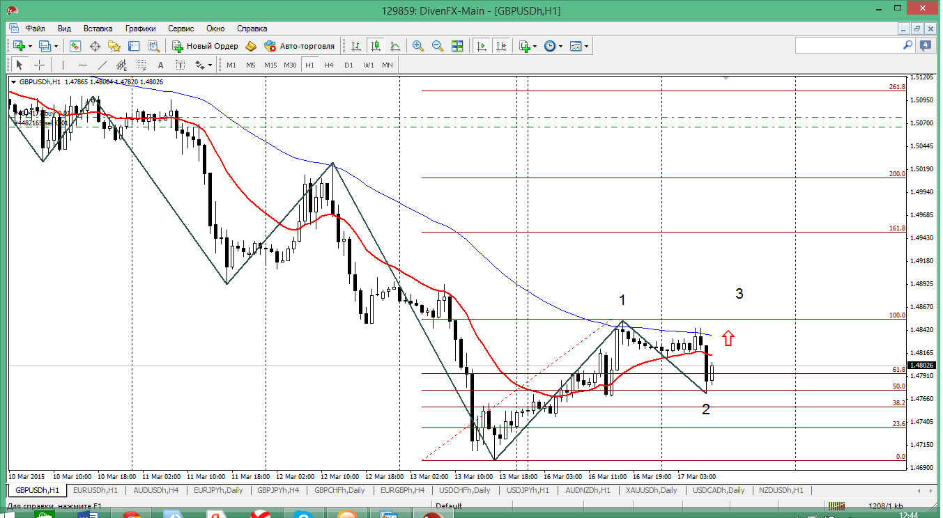 По этой паре, думаю, нет необходимости уходить в большие ТФ. Есть желание посмотреть график Н4, для торговли внутри дня, анализ этого ТФ в выходные довольно занятная штука. Так вот, если евра с фунтом падали до самого закрытия рынка в пятницу, то австралиец спокойно и технически обоснованно лишь откорректировался к важному фибоуровню - 61.8%, который держал снижение практически всю пятницу. И есть вероятность роста уже с открытия торгов в понедельник. Прикрепленные файлы: