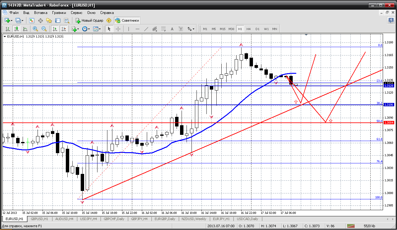 Итак, только евра выдала полный расклад. Странное дело, но уровень 1.3131 всегда, при любом раскладе отфутболивает цену. И не факт, что цена закроет день выше (свои 30 пипс при продаже взяли). Сейчас большие ТФ не смотрю, а на М15 и М30 полный расколбас. Самое приемлемое для меня, на забор... | ||||
