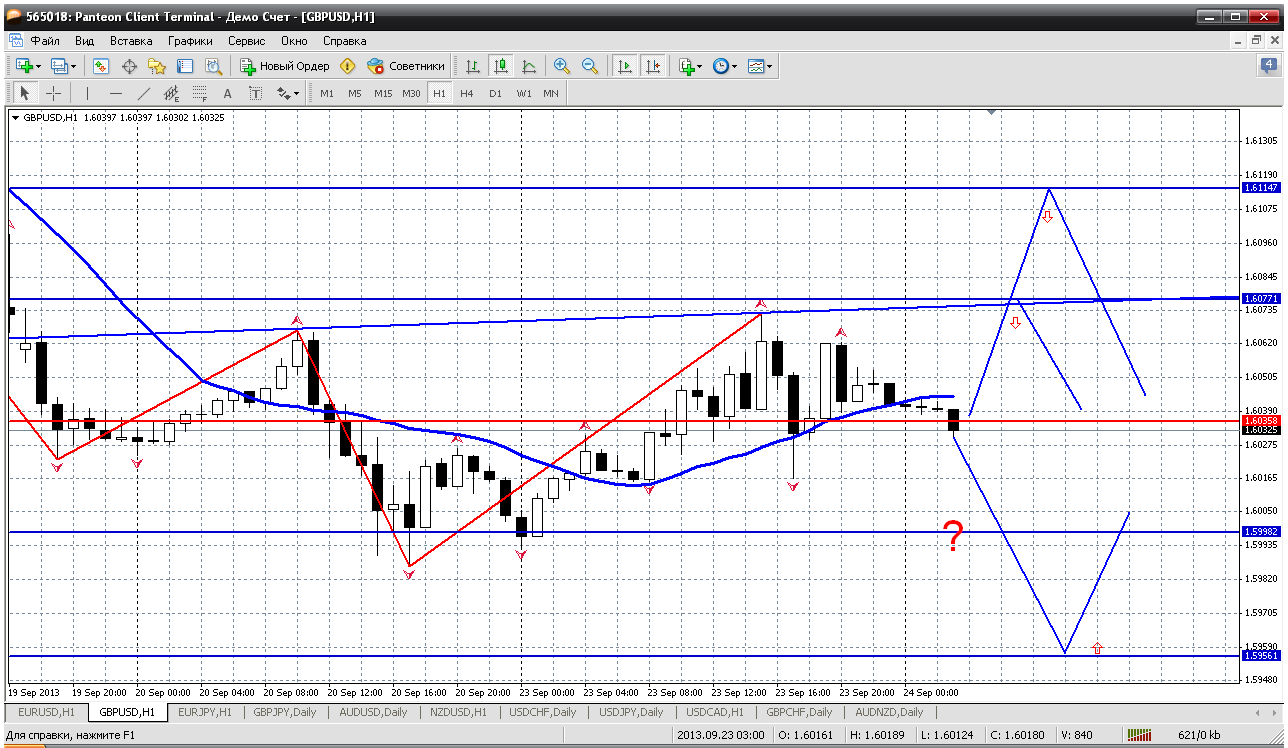 но покупать по любой цене, я не очень люблю, нужен откат, хотя бы до пивота сегодняшнего 1.6066 и уже там спокойненько в покупки Фунт молодец, откат почти 100 пипсов. Так вот покупка сработала и особо я думаю жадничать не стоит. Все эти бравурные 1.63 не для меня. Спокойно фиксируем прибыль на 1.61 где то. Мувинг на Н1 там встретит цену в качестве сопротивления. А что дальше будет, там и решим. | ||||