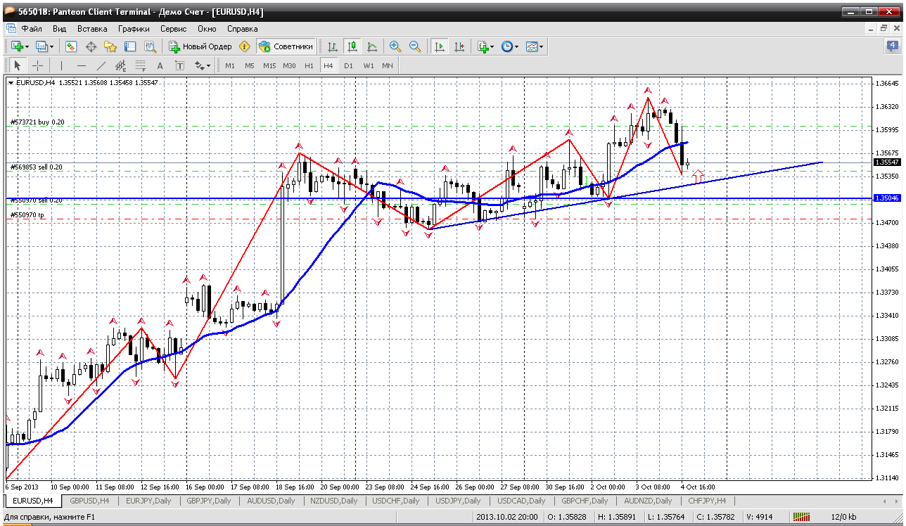 Евра, план на 7.10. Думаю, никаких ГЭПов с открытия рынка не будет. И вот план действий на 7.10. С текущих рост и первая преграда 1.3575 (пивот дневной). Но продавать с того уровня совсем не буду. Зона продаж у меня получается между 50% и 61.8 % отката по фибоуровням. Где то тамже и первое сопротивление внутри дня - 1.3611. Там и продадим. Стоп лос 1.3651. Ниже - вроде не правильно. Прикрепленные файлы: