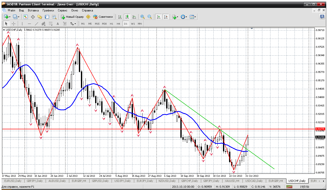 По паре доллаф-франк...пока рост продолжится. Уж очень уверенно цена пробила и мувинг и трендовую (см. дневной ТФ). Но рост не очень высоко. 0.9177 пока ближайшая цель. На том уровне можно попробовать пару продать. Откат напрашивается к пробитым мувингу и трендовой. А дальше будем смотреть Прикрепленные файлы: