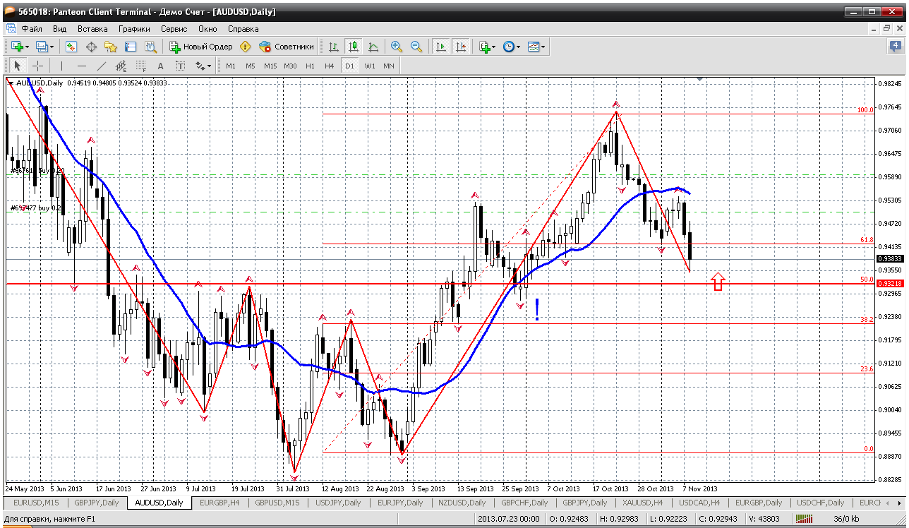 Австралийский бакс что то очень уж прямолинейно снижается. Причем даже к мувингу дневному не корректировались, а продолжили ход на юга. А что ждать то? Считаю еще чуток снизится, примерно к 0.9321 (там у нас 50% откат от роста), да и предыдущее снижение остановилось именно там. Там еще разок прикуплю, а дальше смотреть буду что делать. Как себя в целом бакс поведет... Прикрепленные файлы: