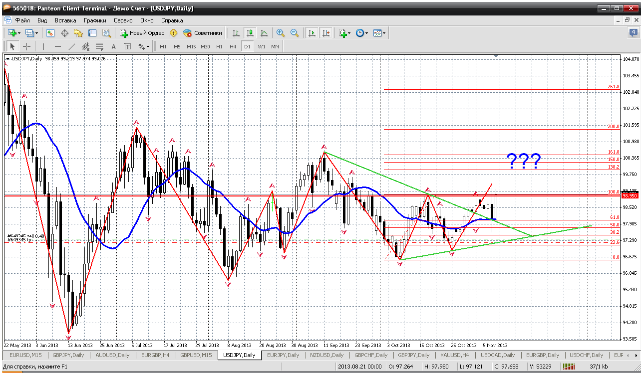 Доллар-йена. Неужели пара и дальше расти будет и наметила своей целью уровень 100 ??? Верхняя граница треугольника (на дневном ТФ) из сопротивления по всем правилам жанра стала серьезной поддержкой. Да и зиг-заг рисуется в северном направлении с целями в районе 100.38. Свою продажу хоть в лок ставь. Усредняться даже не вижу от какого уровня. Прикрепленные файлы: