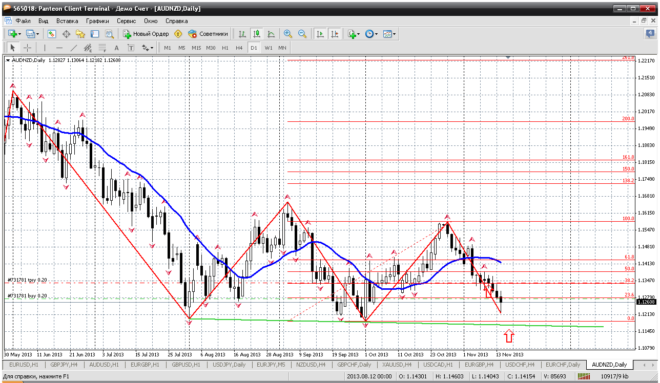 Буду заканчивать утренний обход свои рабочих пар - австралиец - новозеландец. Вот кто меньше других техничен, так это вот эта пара. По данной паре решил поработать малыми объемами от уровней фибо на дневном графике. Получается к моей покупке от 1.1339 я сегодня добавил на 1.1274 и следующая покупка на самой низинке - в районе 1.1175. Соблюдая принципы ММ можно и прибыль получить. На этой паре стоп лосы считаю просто подарком рынку. Прикрепленные файлы: