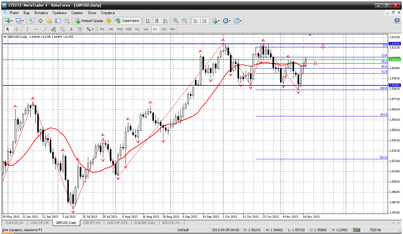 У фунтабакса цена достигла 61.8 % отката по фибоуровням от последнего падения. Поэтому можно в продажи хоть с открытия рынка. Но есть один важный момент. Посмотрите, какой канал на дневном ТФ у пары. Вполне решит еще разок протестировать верхнюю границу, а это 1.6251. То есть ММ во главу угла, что бы на тех вершинках была возможность усредниться... Прикрепленные файлы: