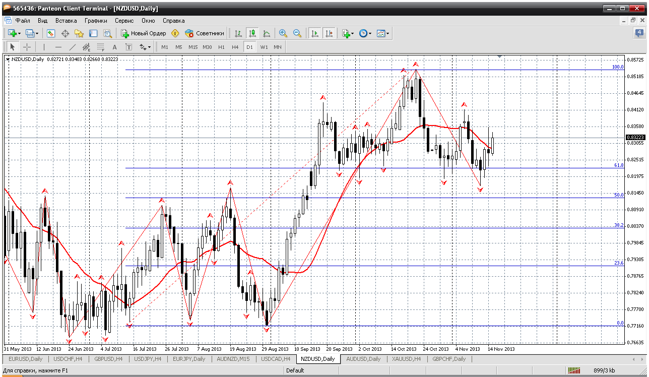 У НЗД только рост на дневном ТФ. Пара чувствует себя несколько увереннее австралийского собрата и для него хватило коррекции до 38.2 % по фибо. Да и цена закрепилась выше дневного мувинга. Теперь путь в фигуру 0.85 практически открыт. Осталось преодолеть только 0.8414, с которым возможны некоторые сложности. Прикрепленные файлы: