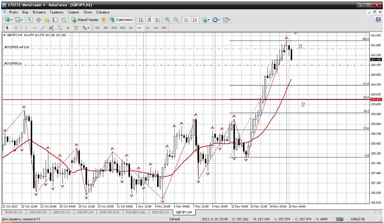 Далее ФЙ... Есть ожидание 162 - ой фигуры...но не знаю, я как открыл терминал с утра, сразу открыл продажу. Продажи и только продажи. Уже и пивот продавили 161.24. Так что смело ждет выход из фигуры 161. Ближайшая поддержка 160.83. Там можно профит зафиксировать, но не покупать. Покупки ранее 159.84 - опасны для депозита... Прикрепленные файлы: