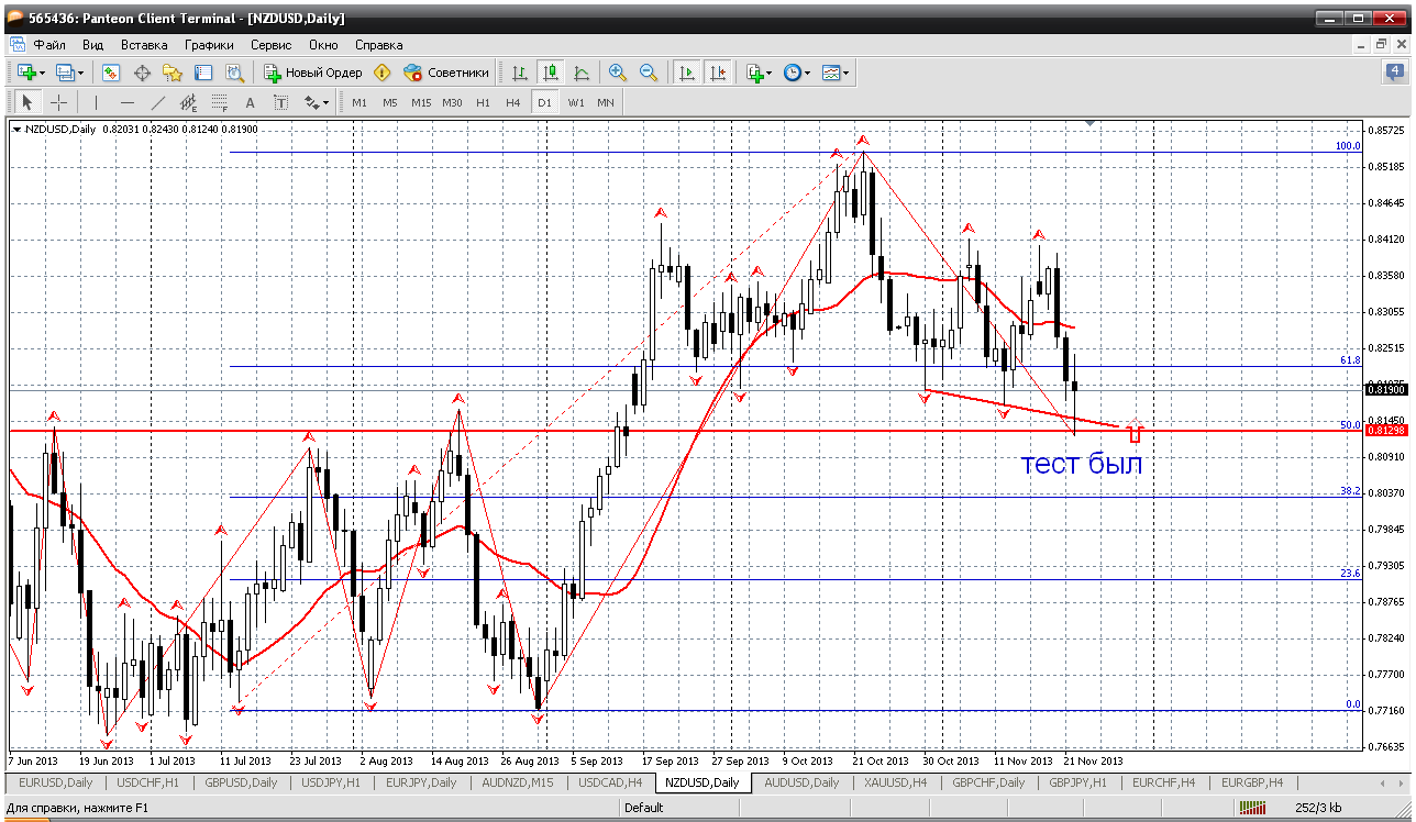 НЗД. По паре у меня такое мнение. Цена на дневном ТФ достигла уровня 50% отката по фибо, а это 0.8129. Так же и протестировали трендовую. Получается хоть с текущих в покупки. Причем покупки могут оказаться и прибыльными и длительными.
