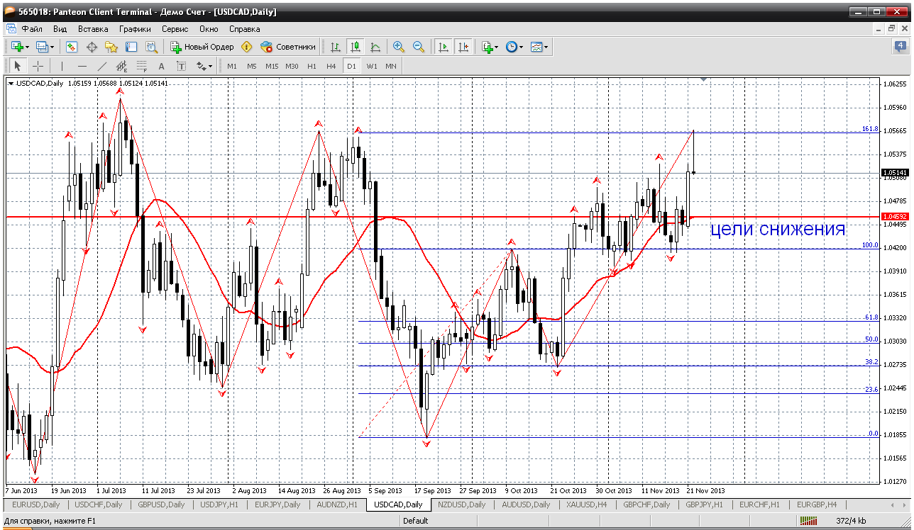 Канадец. По этой паре впору учебник писать. Так она технична и внятно ходит. Цена выполнила классический зиг - заг, на 1 - 2 - 3. И достигла уровня 161.8 по фиборасширению - 1.0559. А вот дальше возможно все что угодно: флэт, рост до следующего уровня, снижение. И все же сделаю предположение, что пойдут вниз. Дневная свеча очень ярко сигналит о снижении. Цели - 1.0459 (возврат к мувингу) или 1.0420 (возврат к предыдущему локальному максимуму). Прикрепленные файлы: