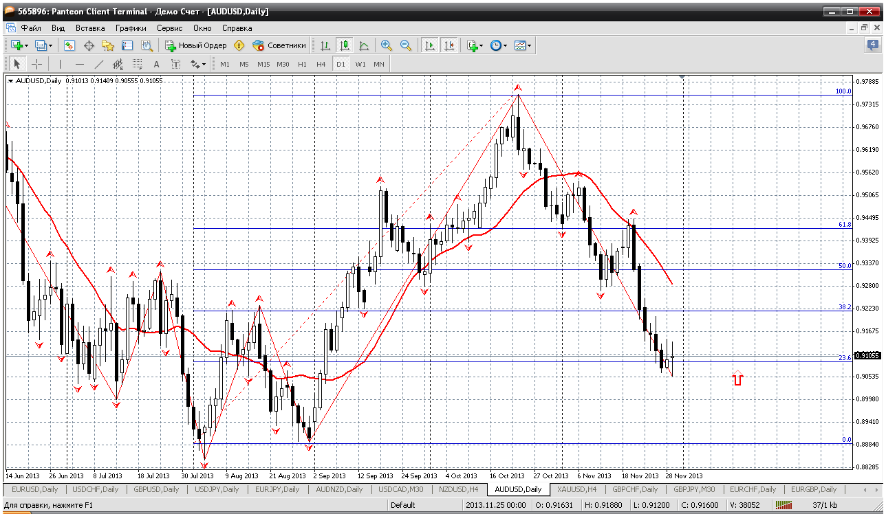 Начну с австралийца. Цена достигла довольно приличной зоны поддержки, откуда вполне безопасны покупки, вполне возможно, что и на длительную перспективу. Вообще, можно действовать по такому плану: покупка в понедельник с отерытия рынка, далее, если, что пойдет не так, в районе 0.90 добавить еще покупку и забыть о паре на длительное время. В районе 0.95 вполне можно вспомнить, а может и попозже... Прикрепленные файлы: