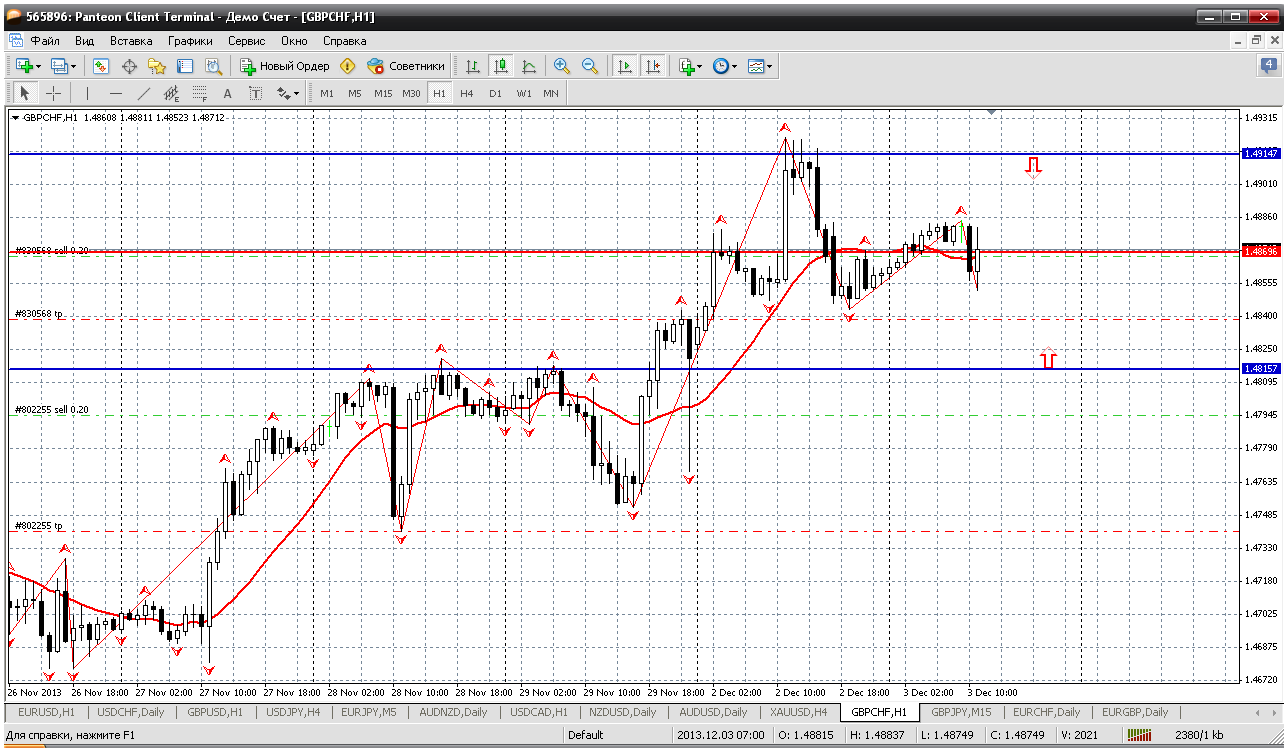 Далее у меня фунт-франк. Вчера думал, что мое предположение на выходных подтвердились - идем на 1.50. А сегодня у ФФ весь запал на рост как бы приутих. И цена уже половину дня топчется вокруг уровня пивот 1.4869 и не знает, в какую сторону пойти. Я тоже не знаю, поэтому подожду что-нибудь более серьезное. Например сопротивление 1.4914 (там же вчерашние максимумы) пригодно для продажи. Как и поддержка 1.4815 - для покупки. Но есть подозрение, что пара зафлэтовала.... Прикрепленные файлы: