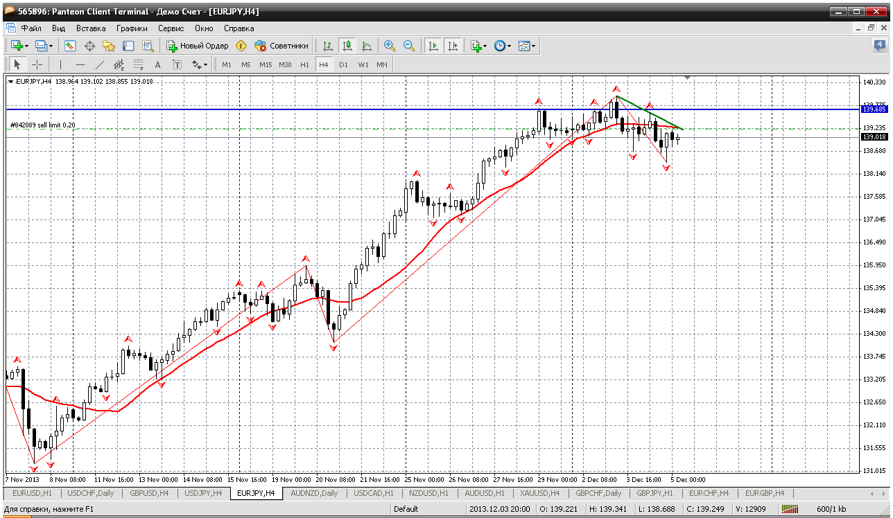 Далее - евройена....её голубушку только продавать, чтобы без нас не свалилась. Но фигура 139 странным образом плотно держит цену вблизи. Но все равно от 139.05 можно начинать продажи. Это пивот дня. Ну может до 139.21 хвоста кинут. Там и мувинг на Н4, который разворачивается на юга и трендовая не пустит цену значительно выше. Так что продажи вполне безопасны. Прикрепленные файлы:
