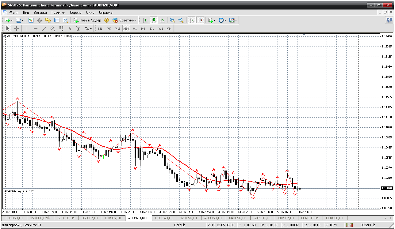 Австр. - НЗД...есть подозрение, что где то в этой зоне пара нашла для себя поддержку серьезную и пока дальше вниз не собирается. Все развороты и откаты начинаются на малых ТФ, вот и сейчас покупку по паре планирую по графику М30. Смотрите, как зиг - заг рисует низинки. Вполне вероятен рост от этого уровня. Выставил ордерок от 1.0997. Посмотрим, может что и получится. Прикрепленные файлы: