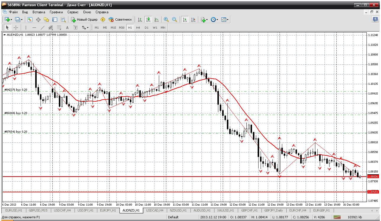 Австралиец- НЗД....трендовикам на этой паре полная благодать, движение в одну сторону, что не работать??? но я так не могу, как в любой торговле, если дешево, то надо покупать... Сейчас цена легла на уровень первой поддержки 1.0804, но считаю, что рановато покупать. Попробую дождаться второй - 1.0769 на сегодня. Вот по этой цене и буду открывать еще одну длинную позицию Прикрепленные файлы: