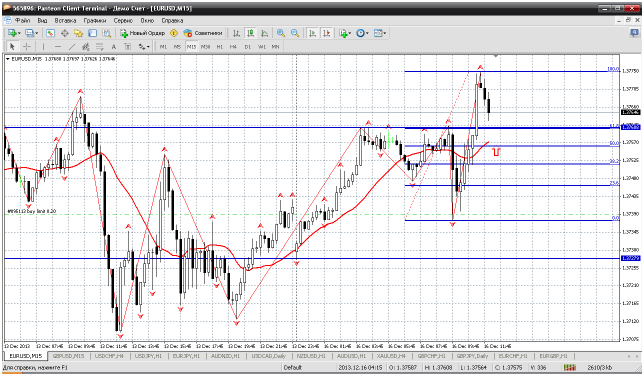 Евробакс....Есть некоторые коррективы по паре. 1.3739...ордер там не сработал (хотя цена там была, но плюс спред и бла бла бла...не открыт короче). Что сейчас на графиках? Утренняя (азиатская) зона пробита вверх. То есть определено направление. Теперь после отката хотя бы до 1.3757 (50 % от последнего роста) можно попробовать и прикупить. Ниже пока не ожидаю. На европейской сессии. Прикрепленные файлы: