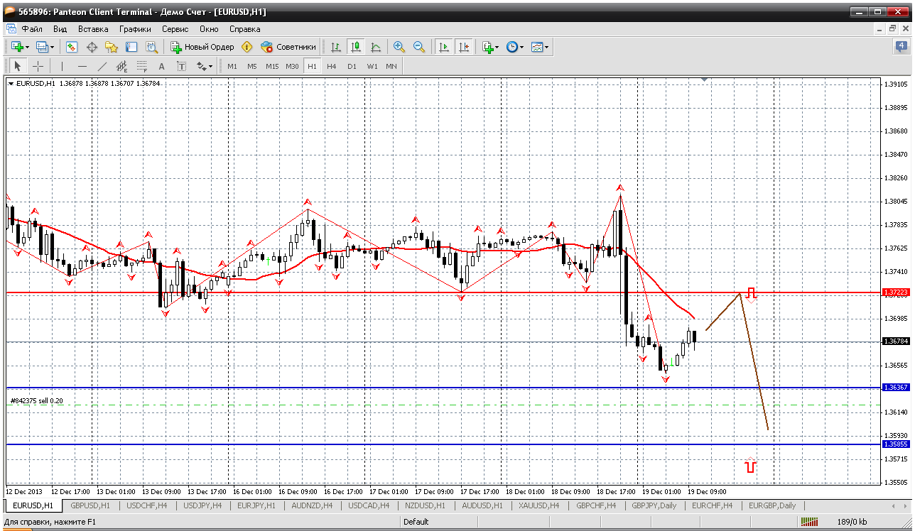 19.12. Евробакс. После вчерашних полетов "картинка просто маслом" - ПРОДАЕМ. И даже есть оооочень хороший уровень для продаж (толькобы дождаться его) - 1.3722 (пивот сегодняшнего дня), а так же 50% отката от вчерашнего падения. Продажа получится безопасная. Прикрепленные файлы: