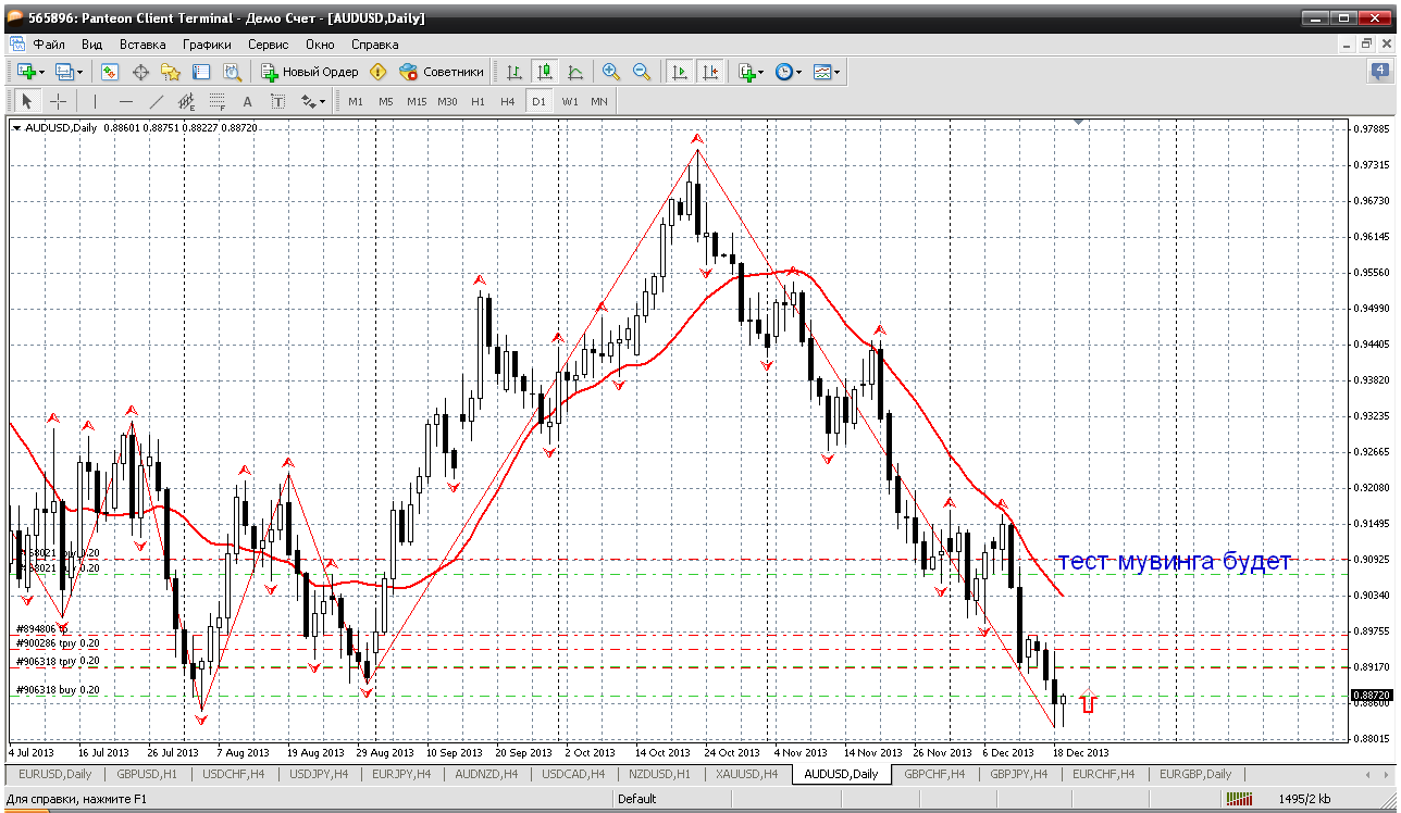поддержка 1.3726, от неё покупаем... Сейчас направление вроде вверх преобладает, поэтому можно попробовать купить при возврате к уровню пивот 1.3762, там же и мувинг на Н1. Прикрепленные файлы: