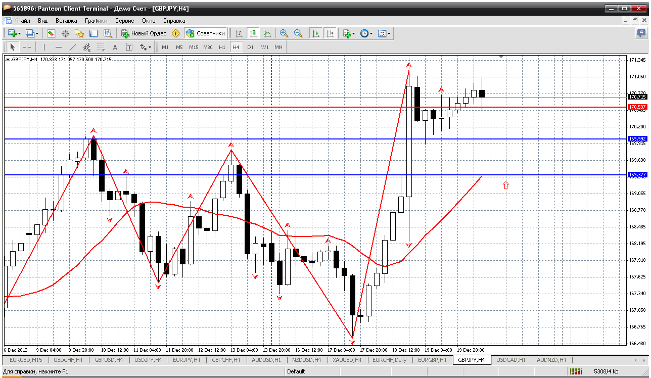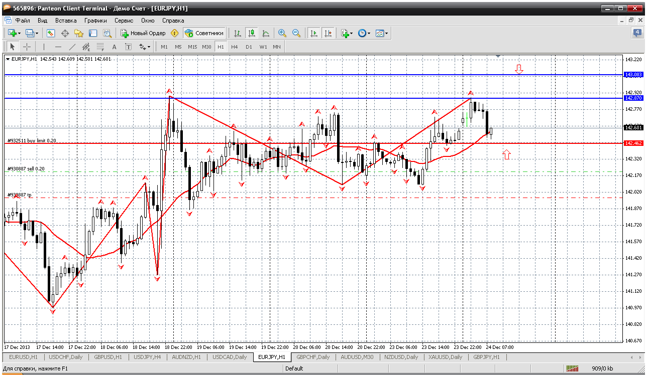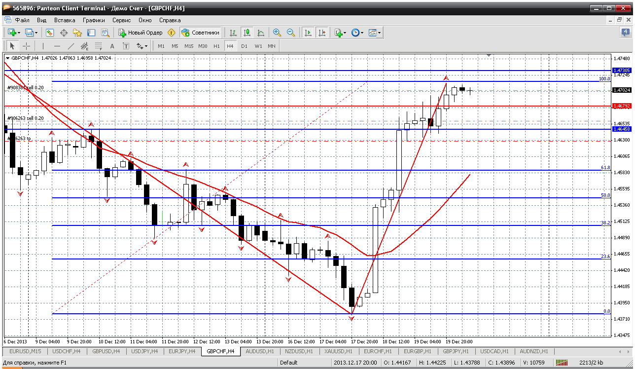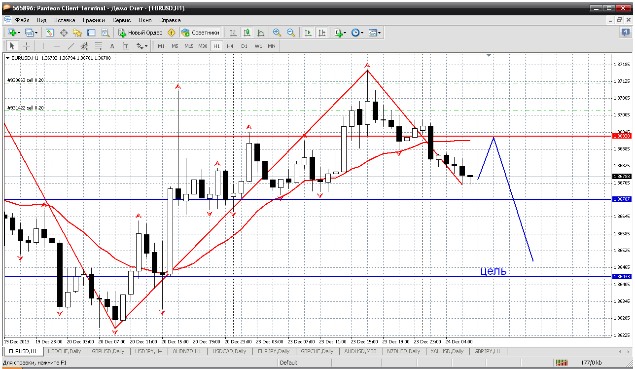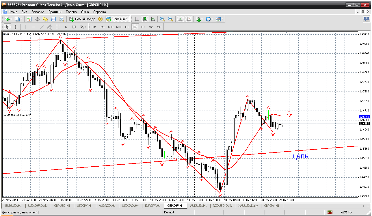 Очень часто трейдеры со стажем вспоминают движение ФФ перед НГ в одну сторону на 700 пипс и после НГ возврат цены. Поэтому к ФФ осторожно. Пока цена и на дневке и на Н4 ниже мувинга. Поэтому смотрим возможность открыть продажи в первую очередь. Получается при возврате к 1.4649 (к пробитому мувингу на Н4) можно открывать короткую позицию. Вроде пипсов 25-30 профита вырисовывается. Прикрепленные файлы: