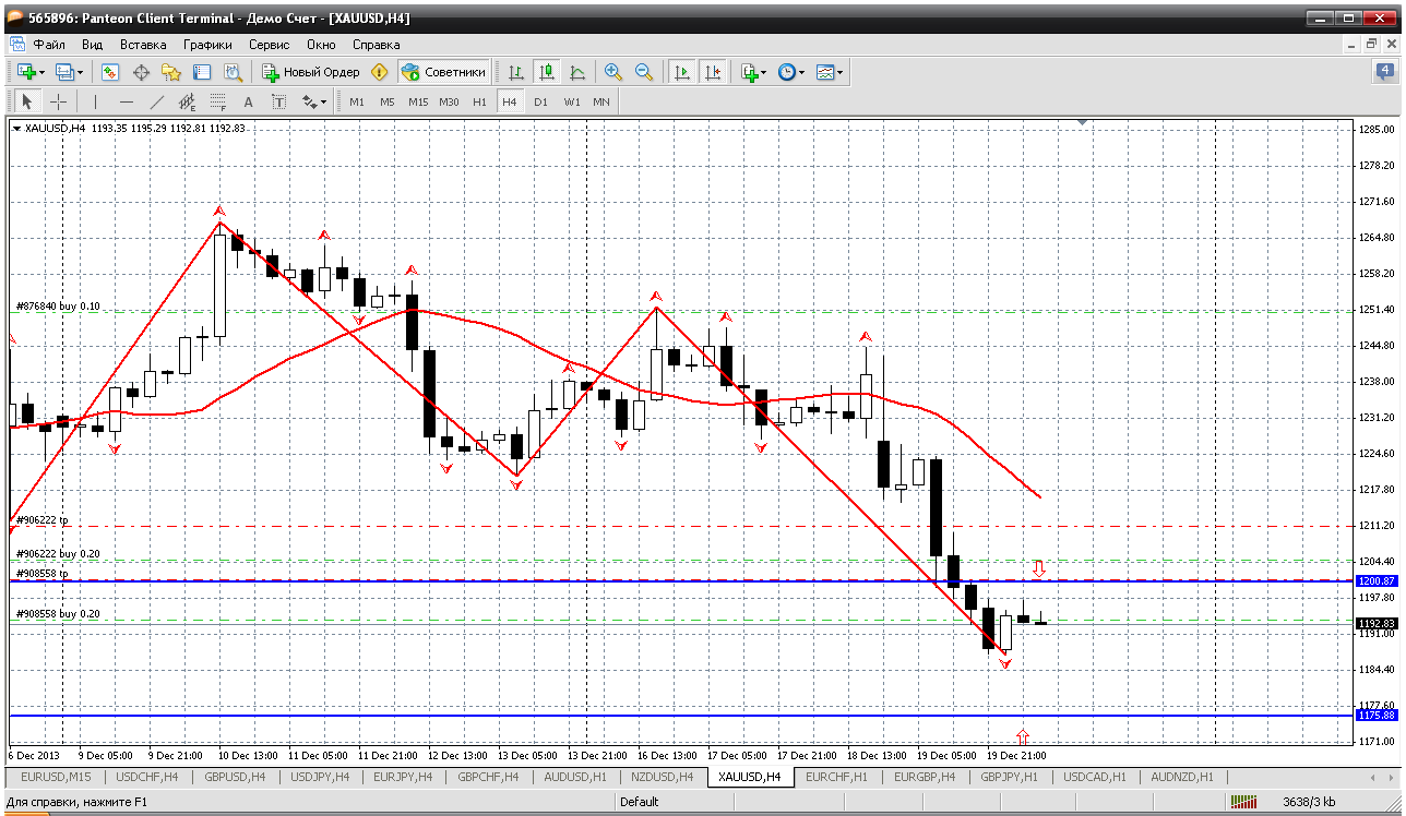 Золотишко....цены закрытия дня ниже 1200 не было давно, а вчера сразу 1188. Серьезная заявка на снижение. Покупки получаются довольно низко 1175, а уровень 1200 превратился в серьезное сопротивление и от него можно даже продавать. Это и пивот сегодняшнего дня. Вот такой расклад у меня получается. Прикрепленные файлы: