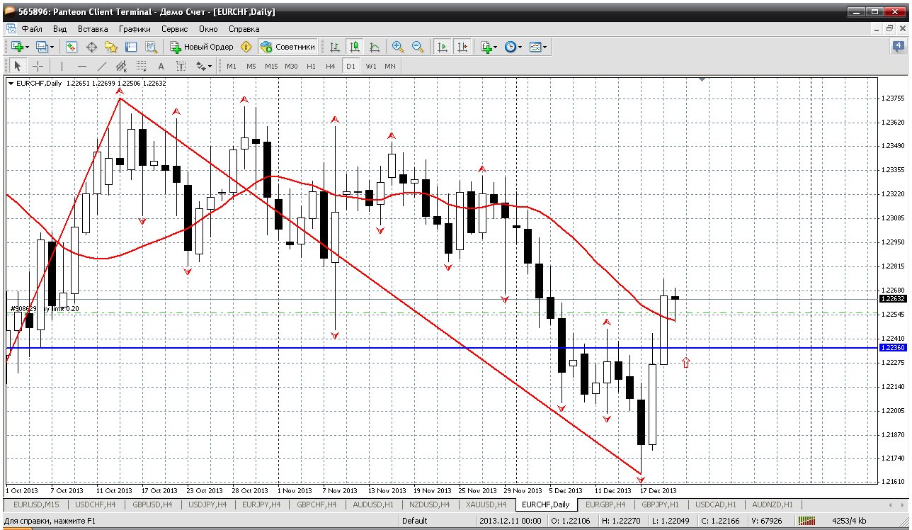 Далее, евро - франк. Пара просто летит к 1.23 не замечая ни чего на своем пути. Вот и вчера мувинг на дневке пробили и не заметили. И теперь вполне возможно при возврате к нему (к мувингу) пару покупать. Это будет 1.2256 (это и уровень пивот сегодняшнего дня), так что может получиться. Далее поддержка 1.2236, хороший уровень для покупки, но вряд ли увидим... Прикрепленные файлы: