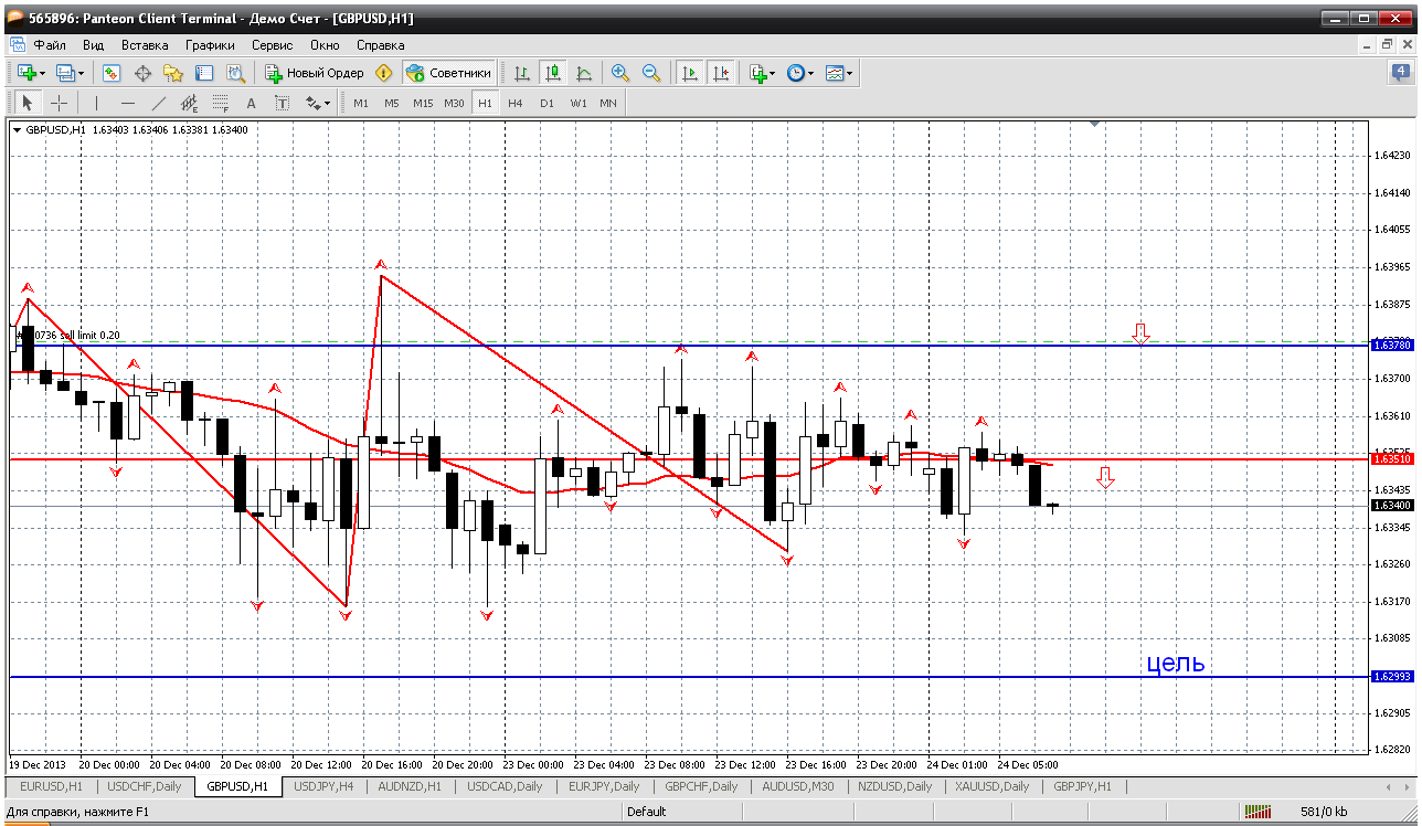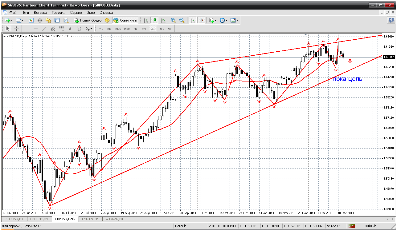 Фунтобакс.... По паре вроде все было понятно: снижаемся. Но свеча за 18 декабря чуть было не перевернула всю картину техническую. Последующие два дня вернули ход пары в нормальное состояние. Снижаемся. И цель снижения 1.6180-1.62. А если взглянуть на историю, то после НГ фунт падает оооочень сильно. Как раз выйдет за пределы канала вниз. Прикрепленные файлы: