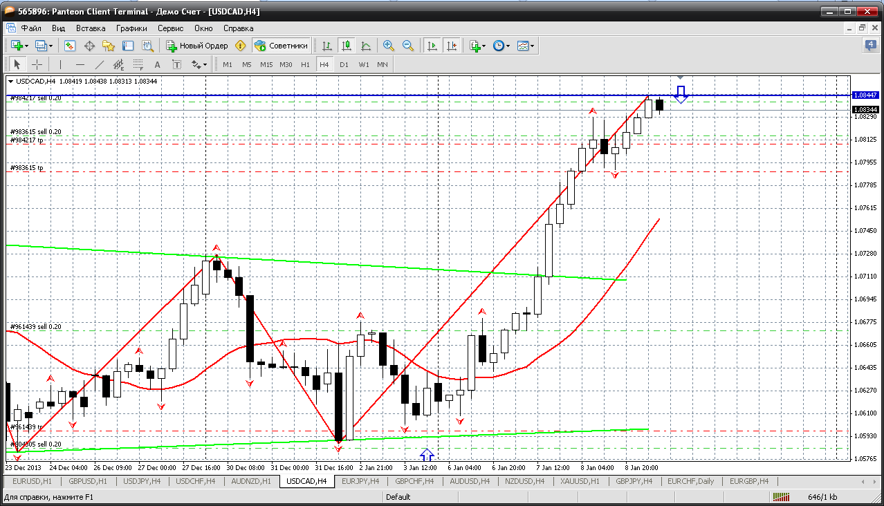 Продолжаем. Канадец. Эта пара в тренде и прямо в таком серьезном. Но пара не столь кровожадна, как йеновые кроссы, поэтому я перехожу к ежедневным продажам от важных уровней. На сегодня по канадцу приличное серьезное сопротивление внутри дня 1.0844. Я по этой цене продал еще. Хоть коррекция до 1.0787, да будет.... Прикрепленные файлы: