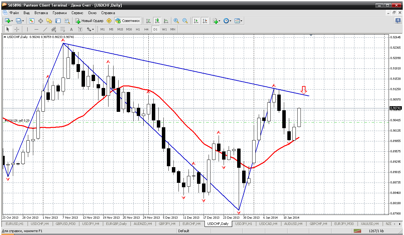 Уже довольно длительное время франковые пары только на продажу. Вот и доллар-франк вчера дал себя продать. Да и сегодня, скорее всего, у него опять есть желание предоставить нам очень приличный уровень для этого. 0.9036-0.9039 цена исполнит технический возврат к пробитому ранее мувингу на Н4 и обоснованно можно продать.... Прикрепленные файлы: