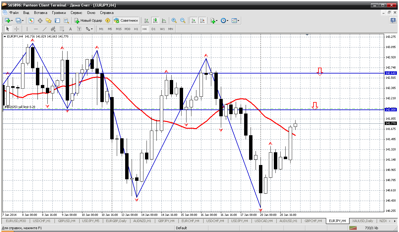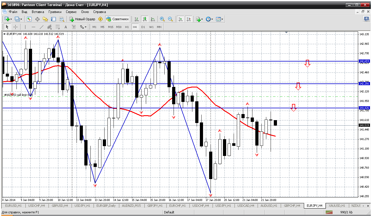 Евро-йена....её только продавать, в отличии от евры и фунта... У меня так получается. Хотя два дня пара изображает "жгучий желаний" вырасти. Но нас не провести. И буду продавать начинать от 141.83 - первое сопротивление внутри дня (это же вчерашний хай)....максимум куда могут закинуть цену 142.65 (третье сопротивление внутри дня) и непроходимый барьер в виде мувинга на дневке....и пока цена ниже его - только продажи Прикрепленные файлы:
