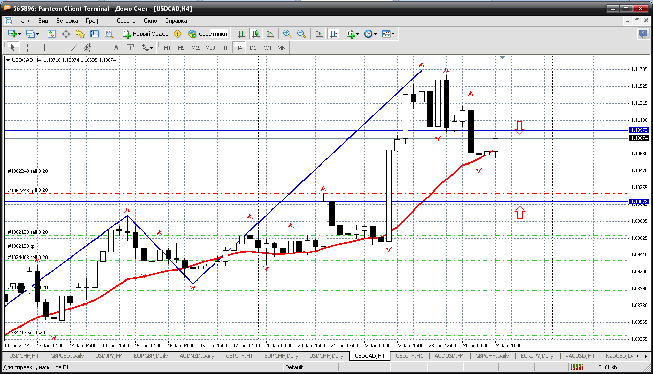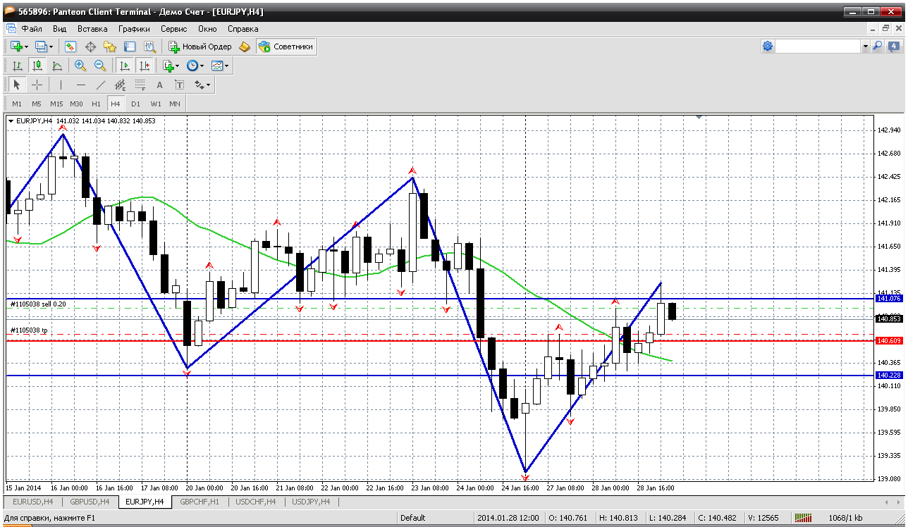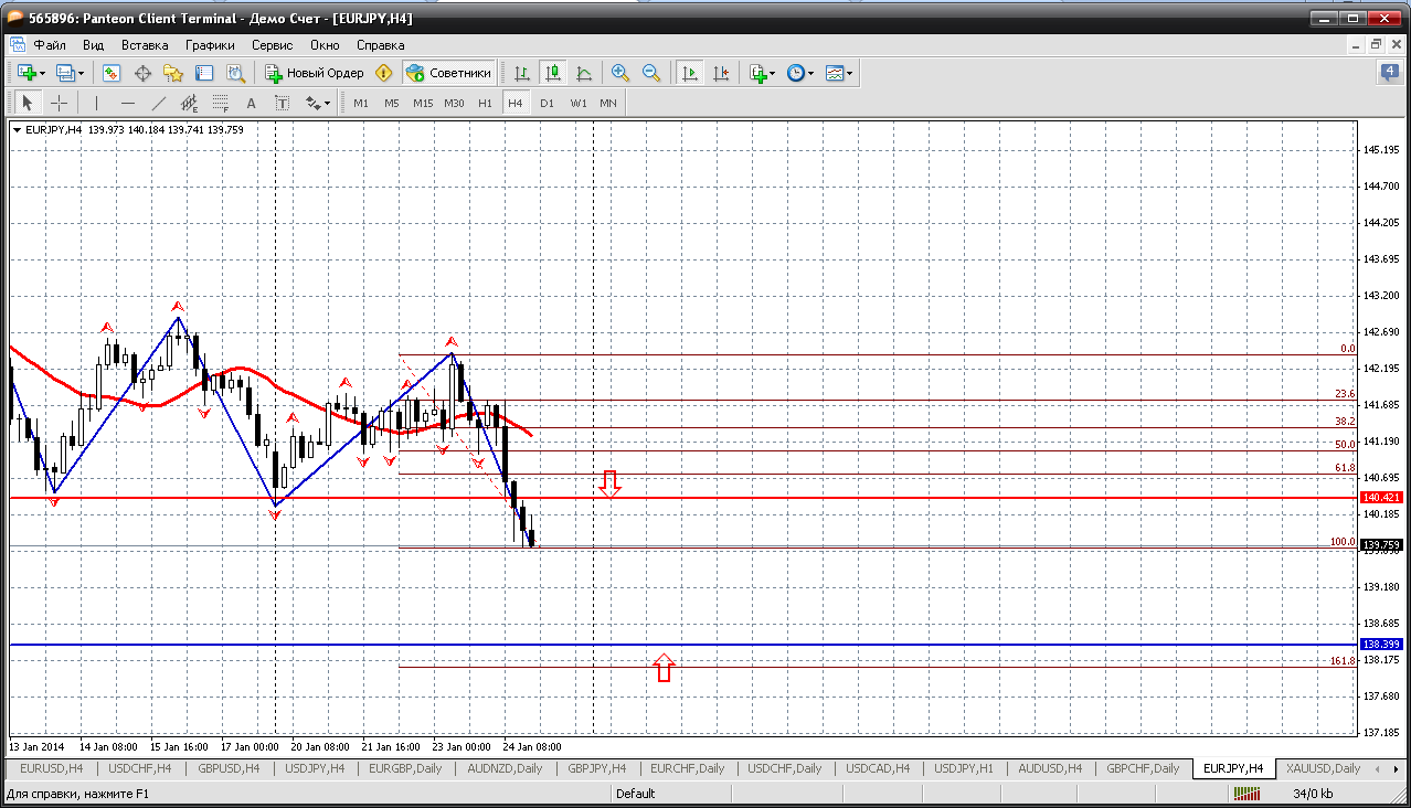 И наша "восточная загадка" - евро-йена. На 27.01 по этой паре можем оказаться без позиций. Очень далеко у меня получились уровни для открытия сделок.