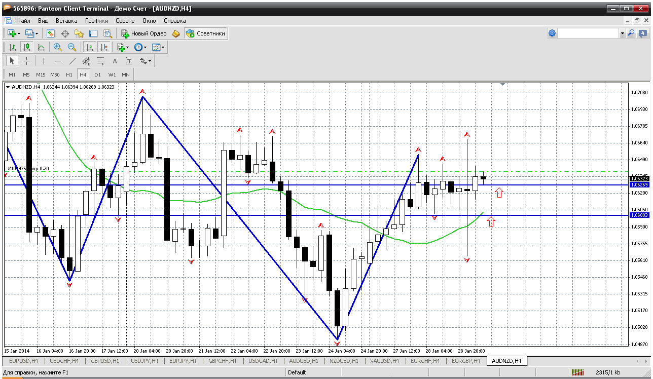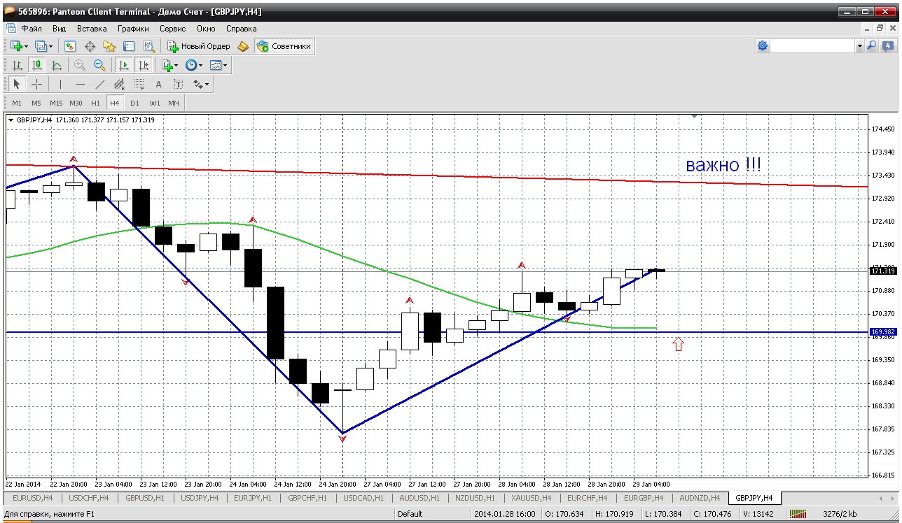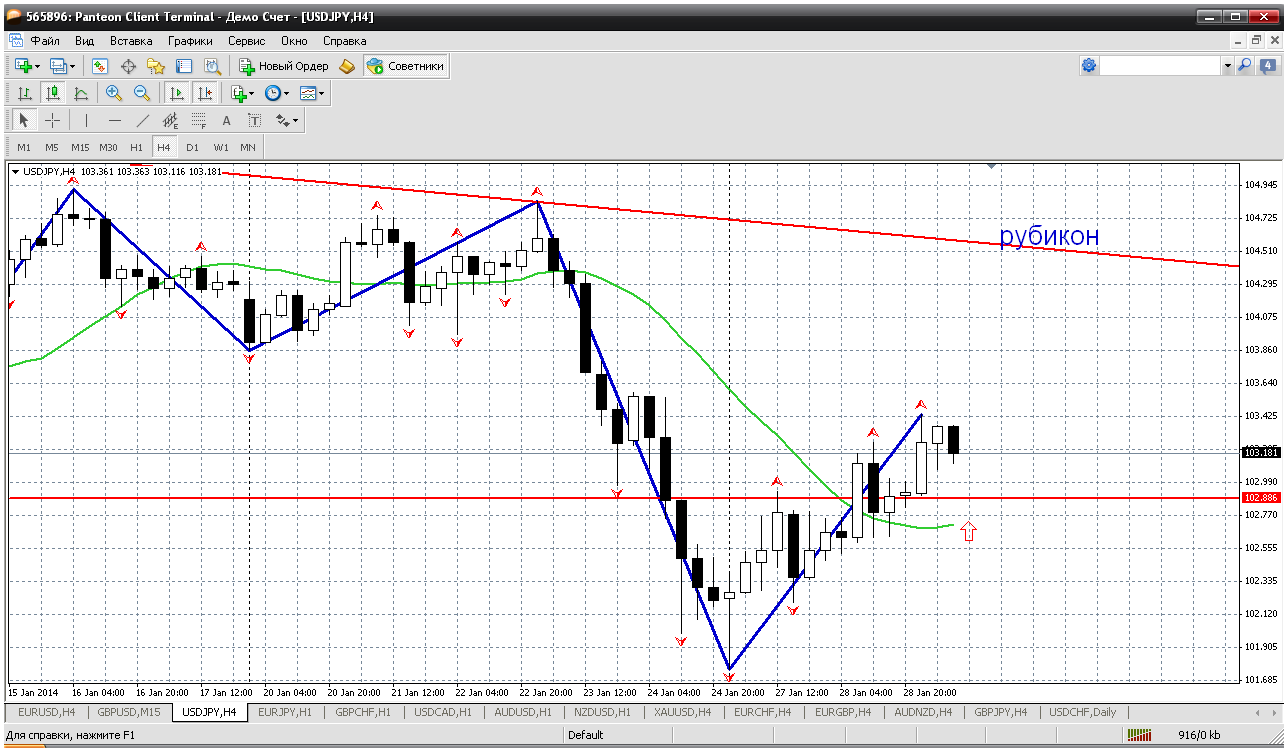 Доллар-йена...о и эту пару при откатах покупаем. Впрочем ничего нового, на всех йеновых парах тоже самое: ждем отката (довольно серьезного) и в покупки. Так вот по баксо-йене получается 102.88 надо дождаться. Там у меня и пивот сегодняшнего дня, а также и мувинг на Н4 тоже сдержит цену от падения. Реален рост. Покупки обоснованы... Прикрепленные файлы: