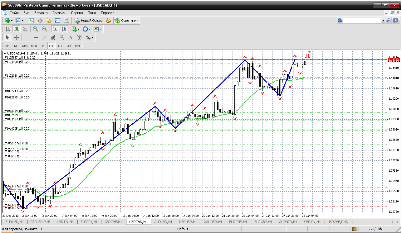 И канадец у меня остался из моего списка. А что у нас по этой паре? Только продажи. Не покупать же на таких вершинах. Так вот для продаж есть все основания. На Н4 формируется самая настоящая двойная вершина и продажа от 1.1175 вполне реальна и обоснованна. И если цена начнет её отрабатывать, то цель снижения вырисовывается в районе 1.09. Думаю, что попробовать можно... Прикрепленные файлы: