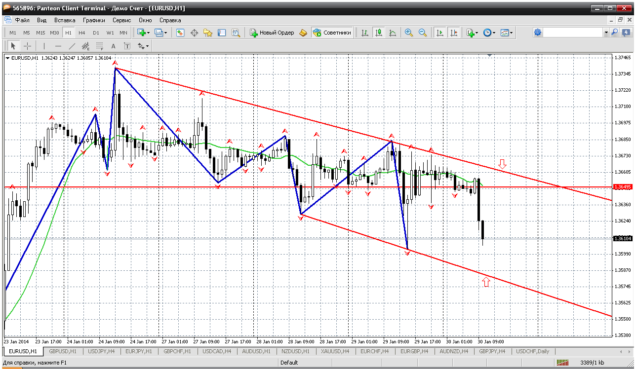 Евра....интересно, но сегодня картинки евры и фунта практически одинаковы. И на евре все тот же канал на Н1. И теже планы - от верхней границы продаем, от нижней - покупаем. Продать было бы интересней, там и пивот сегодняшнего дня 1.3649 тоже не пустит цену выше....а вот у нижней границы других преград то и нет... Прикрепленные файлы: