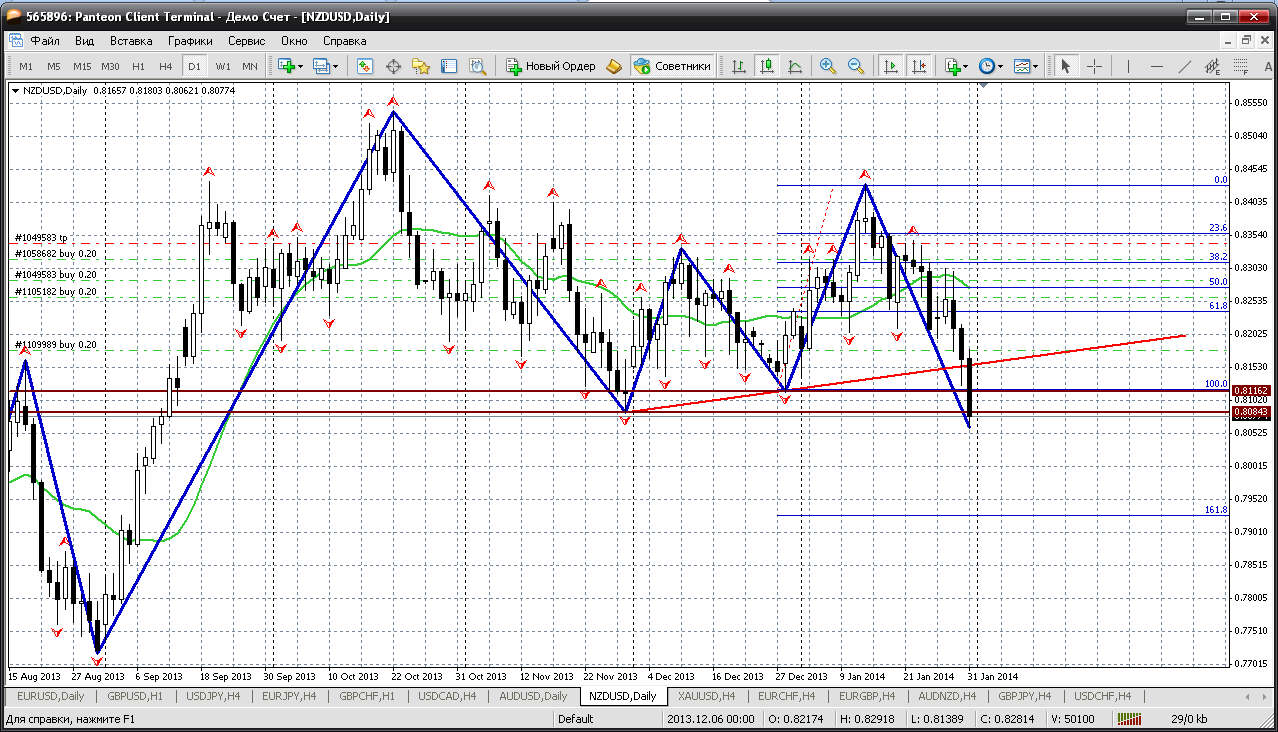 А вот у НЗД просматриваются только низы и только снижение. Причем довольно глубокое. И цель этого снижения - район 0.7926.