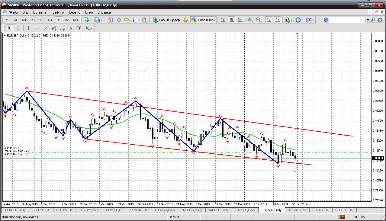 По евройене после вчерашнего приличного снижения, у меня получается несколько уровней для покупок снизу и один уровень для продажи сверху. Вот на что буду ориентироваться: