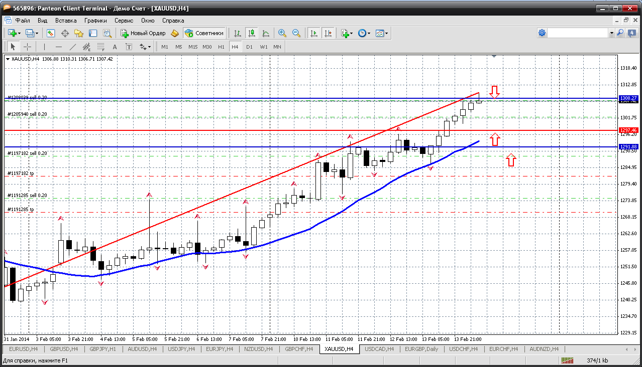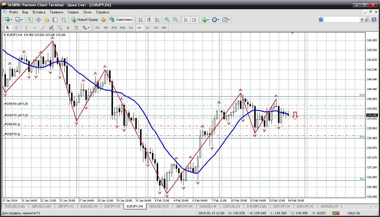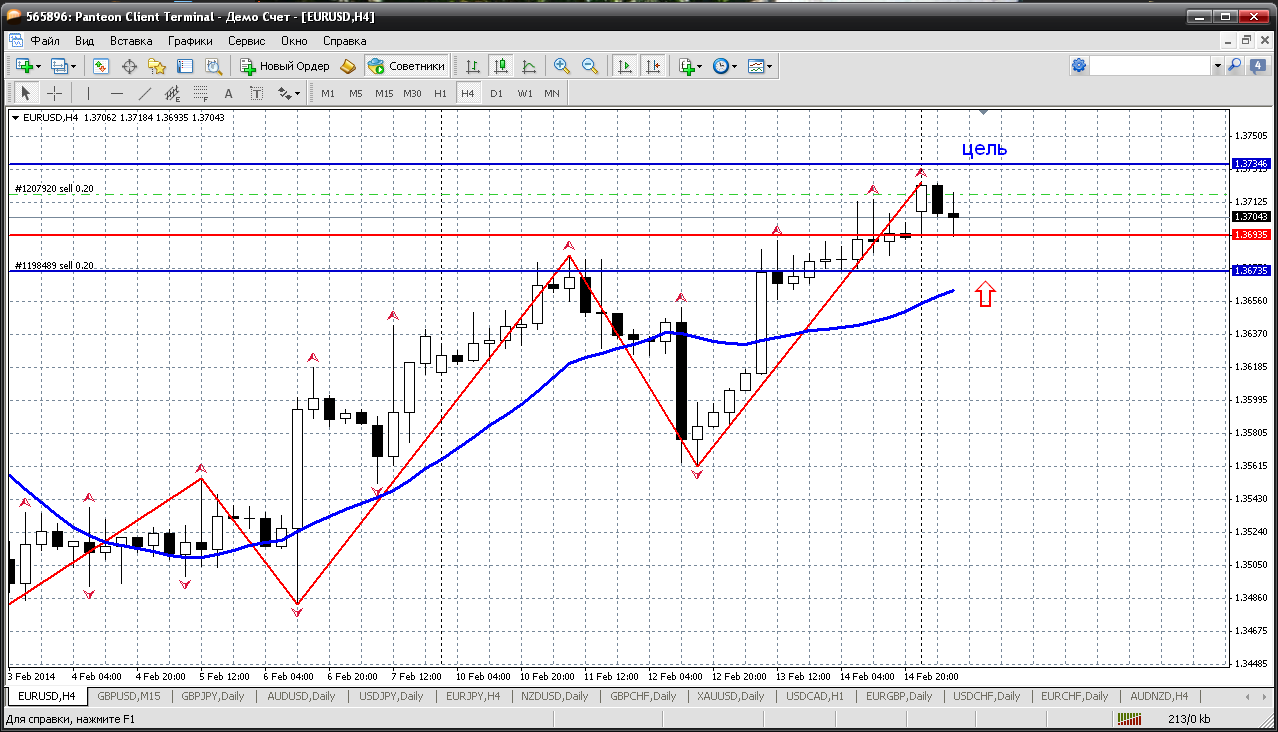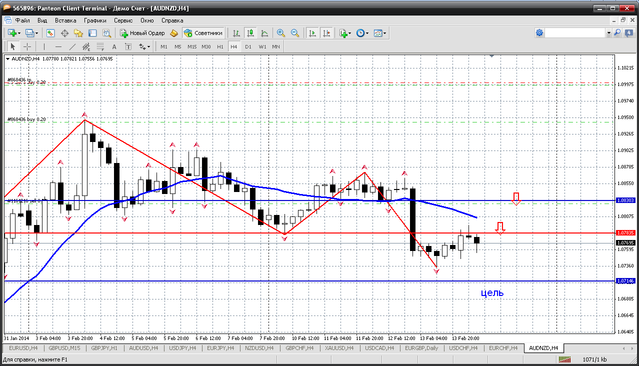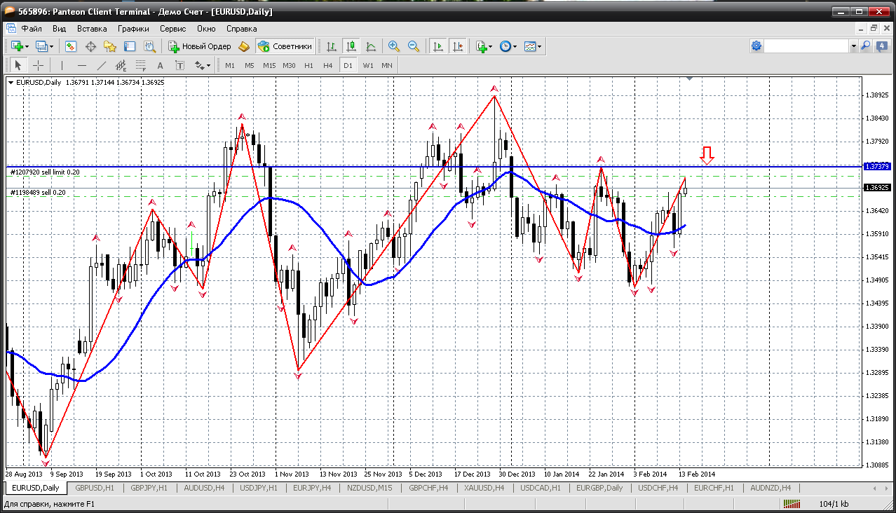 По евройене ситуация очень непонятной получается. На графиках, которые я смотрю на выходных (дневной ТФ и Н4) и на том и на том цена прилипла к мувингу. Только на дневке - сверху, а на Н4 - снизу. Поэтому, сказать об основном направление и обосновать его трудно. Лично я придерживаюсь все таки графика Н4, а значит - жду снижения. Прикрепленные файлы: