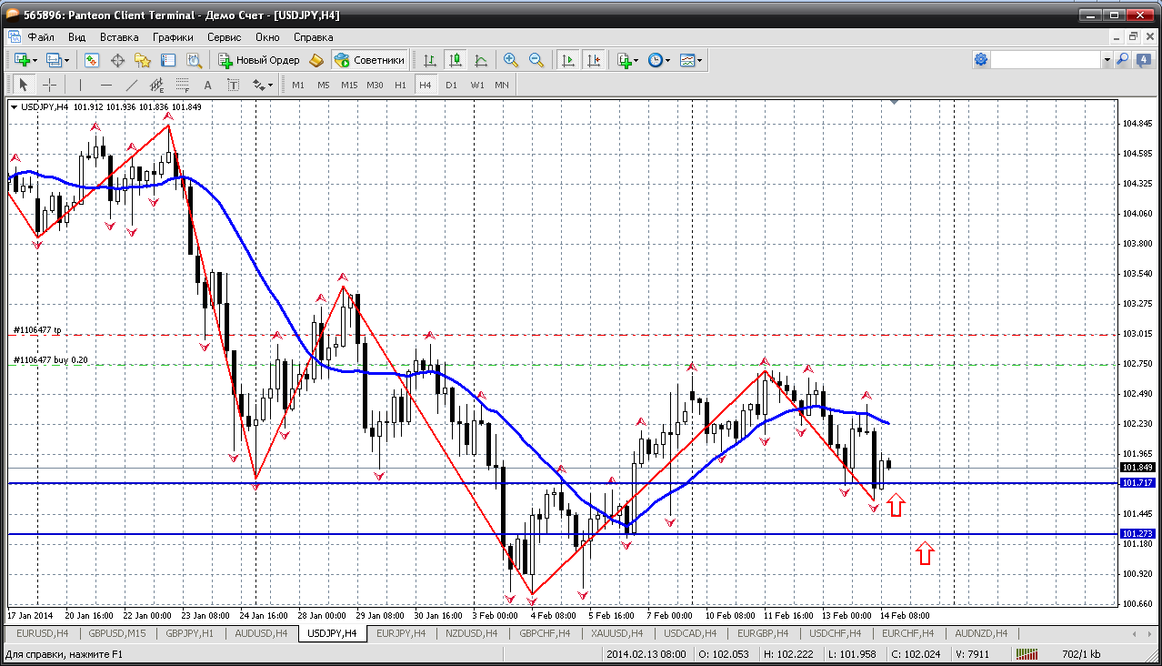 Доллар-йена...Эту пару сегодня вроде как покупать надо. На мой взгляд. И для этих целей определены два уровня, две поддержки. Первая из них 101.71....этот уровень уже тестировали, но что то не решился открыть позицию....следующий уровень 101.27...дождусь ли? может все таки от 101.71 покупать???? Прикрепленные файлы: