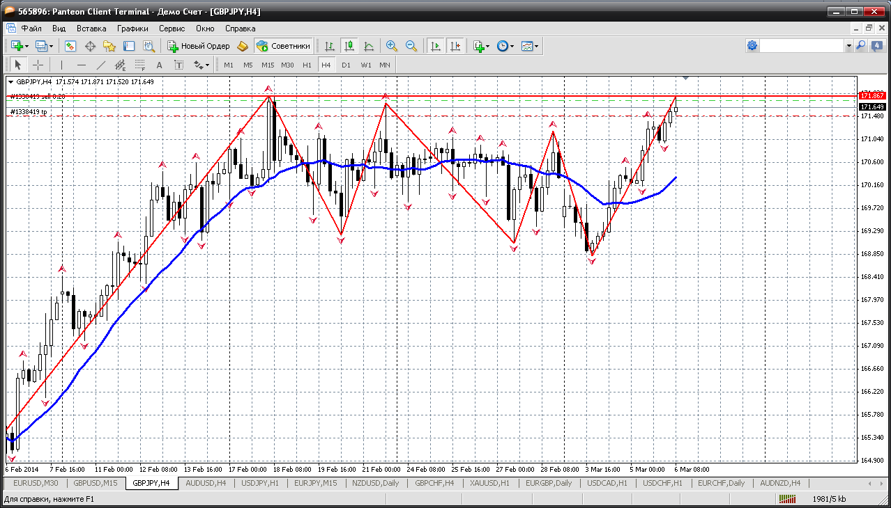 Евройена на очереди. И вот по этой паре все просто. Продаем её от 141.07. Конечно, приверженцы трендовой торговли могут "покрутить у виска пальцем", но когда еще продавать, если не от этого уровня ??? Смотрим: Это у нас сопротивление внутри дня, второе между прочим, а не первое.....Далее - это и верх довольно продолжительного диапазона..... это - тест трендовой на Н4. И эта трендовая направлена на снижение....Достаточно обоснования. Я так думаю. Прикрепленные файлы: