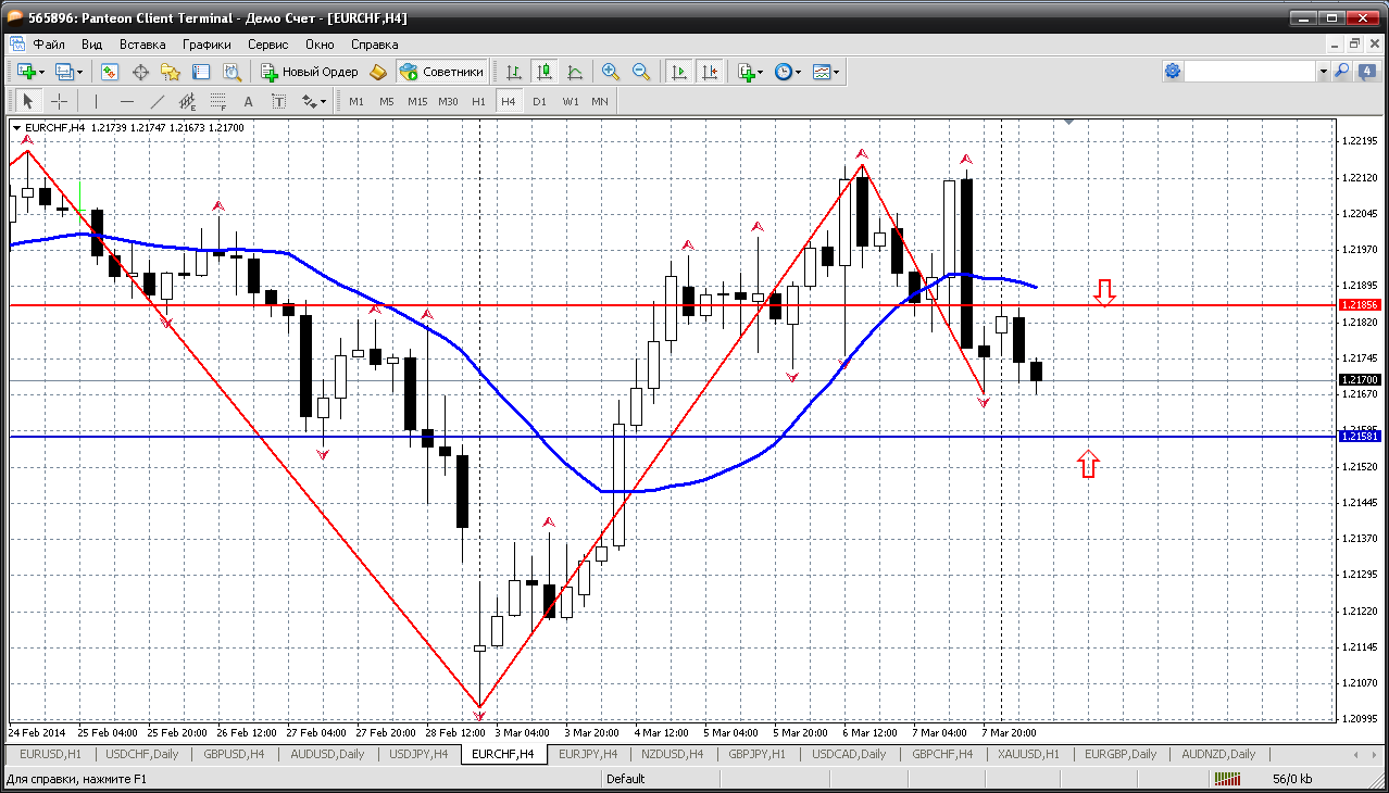 Евро-франк....по этой паре на сегодня обычная торговля внутри довольно узкого рабочего коридора. 1.2185 - пивот дня и верхняя граница рабочего коридора, а когда цена наверху - самое время продать....