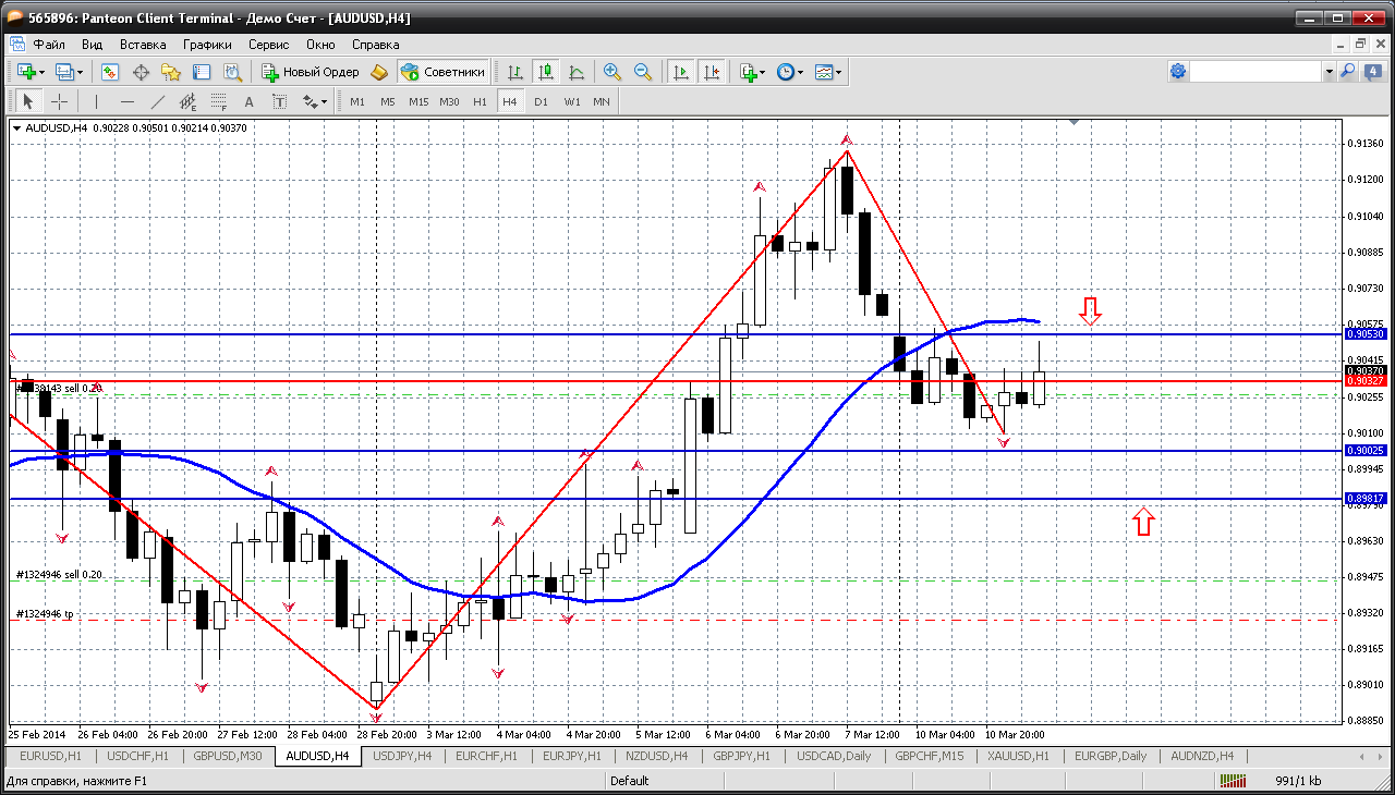Далее - австралиец. Сегодня пару буду продавать. И вполне можно начинать от сопротивления ближайшего 0.9053. К тому же там же, в той зоне и мувинг на Н4 проходит. При этом не стоит от 0.90 (серьезный уровень и там поддержка 0.9002) пару покупать. Безопаснее от второй поддержки 0.8981 Прикрепленные файлы: