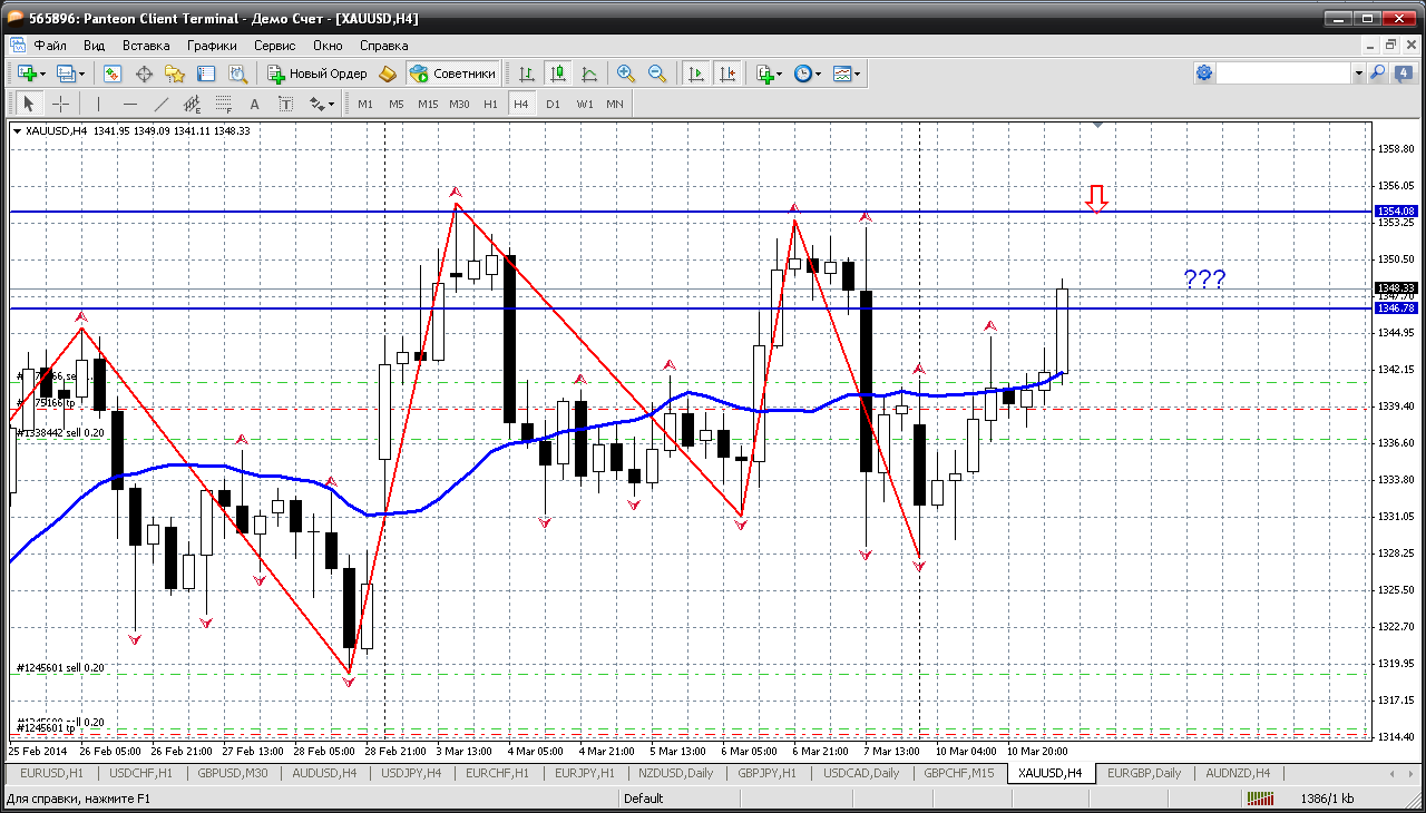 Золото....по этому инструменту пока ничего не изменилось: с вершинок пробовать продавать. И пока на него обратил внимание, цена достигла первого сопротивления 1346.84. Хорошо, что без меня. Пропускаем это сопротивление, а начинаем ждать следующего 1354.05....к тому же это хай от 03 марта....могут и снизиться.... Прикрепленные файлы: