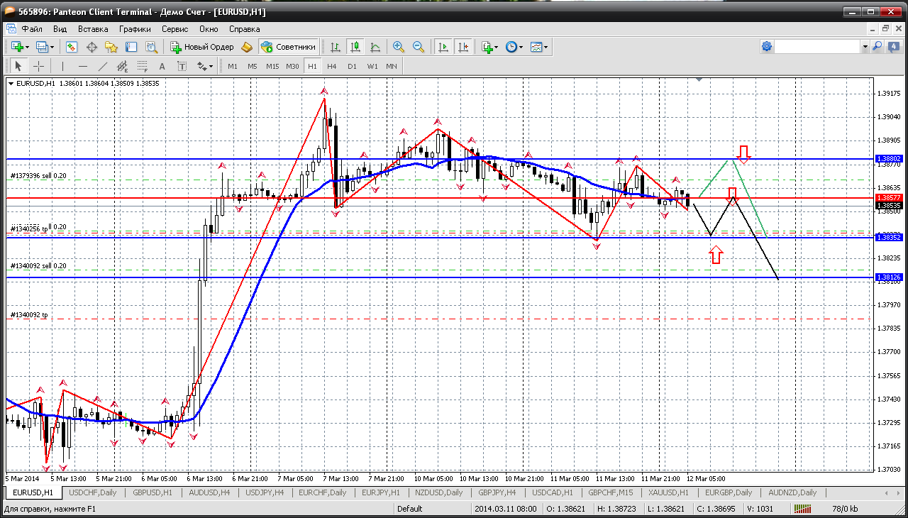 Далее евро-фунт...то что пару надо продавать практически все видят. Вот только называют разные уровни для открытия позиций. Первое сопротивление внутри дня у меня получается на 0.8309. Вот от этого уровня и планирую продать пару. Но её стояние за все утро в 9-ти пипсах уже наводит на мысль, что 0.8309 ооооочень далеко, и что до такого далекого уровня идти дня 2-3 надо будет.... | ||||