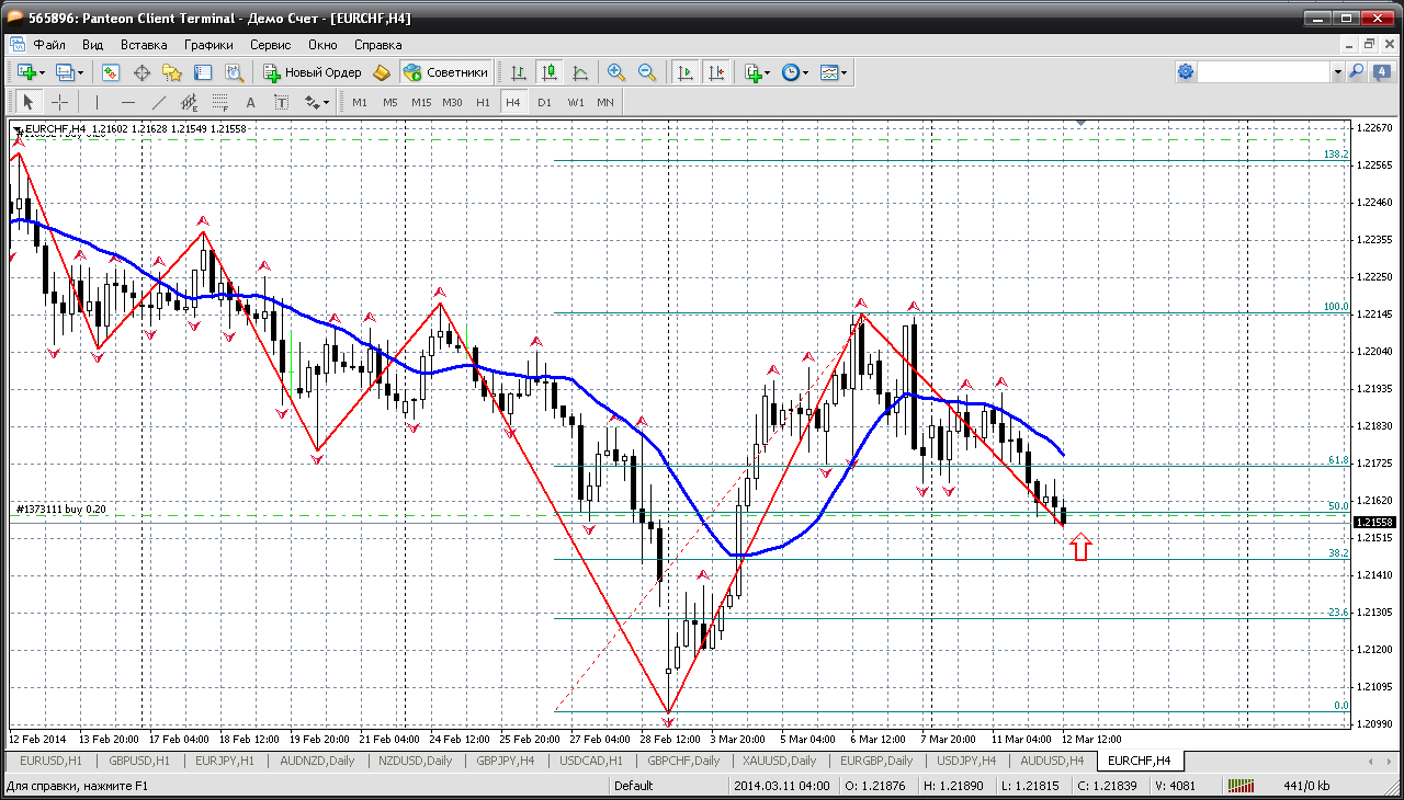 Евро-франк....по этой паре давно ожидал уровня 1.2158. В чем его привлекательность? Так вот, движение от 1.2102 до 1.2214 - это есть начало восходящего движения по паре. Можно сказать волна 1. Сейчас цена выполнила необходимый откат в 50% по фибоуровням (европары с должным уважением относятся именно к 50% откатам), то получается от 1.2158 вполне обоснованы покупки пары. Тейки ставим от степени жадности. Прикрепленные файлы:
