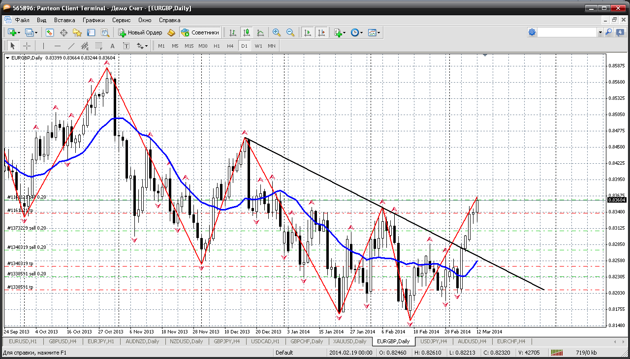 На очереди еще один кросс евры - евро-фунт. На этой паре наиболее ярко видны все признаки болезни рынка и эта болезнь называется "евростения". Не говорите, что рынок всегда прав, я знаю. Но такие периоды безудержной любви к одной валюте, в данном случае, к евре, по иному и не назовешь. Все цена достигла серьезного сопротивления 0.8361, от которого можно еще раз продать. А дальше просто ждать. Обычно после такого, одной дневной свечой отыгрывают большую часть роста.... Прикрепленные файлы: