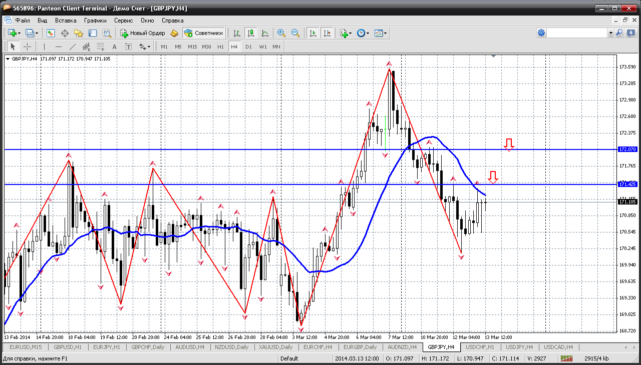 Еще один йеновый кросс Фунт-йена....так вот фунт что то мозг выносит, а уж с ФЙ связываться чито то страшно. Как то падают они все. Причем делают это безоткатно и войти в движение не получается. Остается только против движения. А против тренда ФЙ может получиться себе дороже. Вот и сегодня 170.20 - серьезная поддержка внутри дня. Но, думаю, пока не протестирует уровень 170.00 вверх не пойдет. Пока так получается. Прикрепленные файлы: