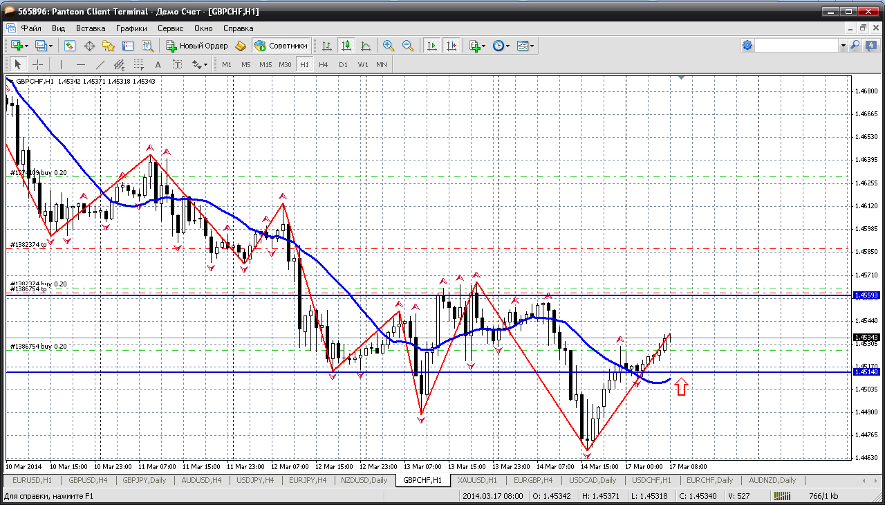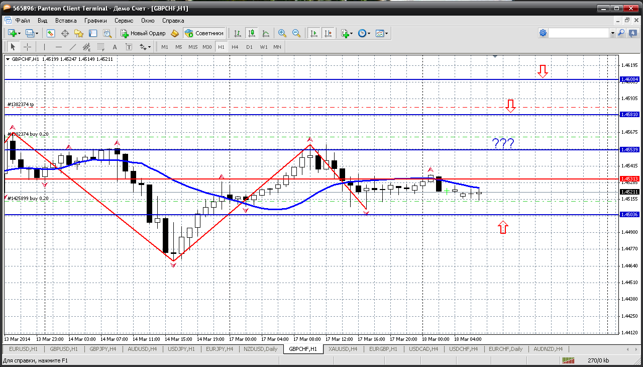 Далее - Фунт-франк...вроде покупать пару надо, но она растет безостановочно с пятницы, поэтому входить в позицию здесь и сейчас не стоит. Надо дождаться отката, достаточно до пивота 1.4514 и покупать.....если же пойдут дальше в рост, то ближайшее сопротивление 1.4559 слабовато будет, продавать безопаснее от второго сопротивления 1.4602. Пока так получается. Прикрепленные файлы: