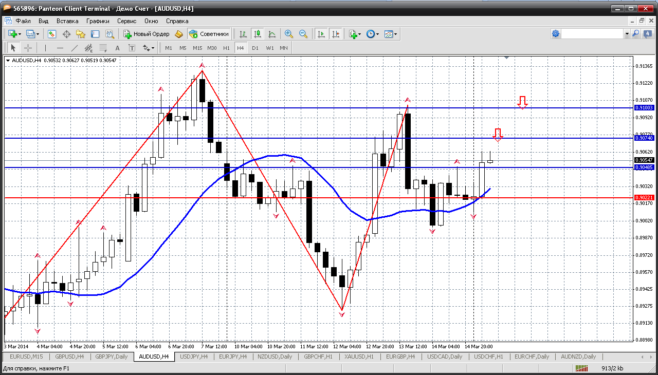 Австралийца, с такими настроениями, какие демонстрируются с утра, пока только покупать. Но с отката. Глубокого, скорее всего, не будет. А вот возврат к 0.9048 (пробитое первое сопротивление) возможен и от него можно и купить. Цель в районе 0.91.....там и продажи смотреть будем.... Прикрепленные файлы: