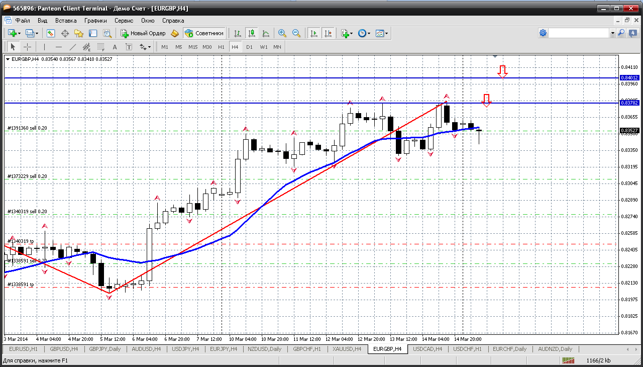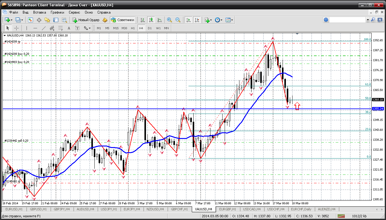 Золото....а не попробовать на этом инструменте сегодня и покупать и продавать? Ситуация вполне способствует этому. Своим тестом уровня 1392 вроде как показало нам, что останавливаться не собирается и что тест 1400 дело самого ближайшего времени и вполне возможно даже сегодня. В свете этого можно попробовать на откате к пивоту 1379.41 и купить золотишко и тупо ждать теста 1400. Он будет, его не может не быть....а там очень вероятны и продажи...У меня так получается Прикрепленные файлы: