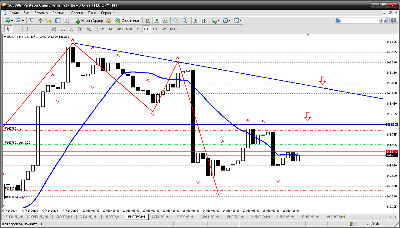 Далее - "восток - дело тонкое" - евро-йена. Пару буду продавать. Для этого чуток подожду приличной высоты. Например, уровень 142 очень подойдет. Сам по себе круглый и сильный, и 141.95 - первое внутредневное сопротивление. Так что вполне обоснованно и безопасно получается...