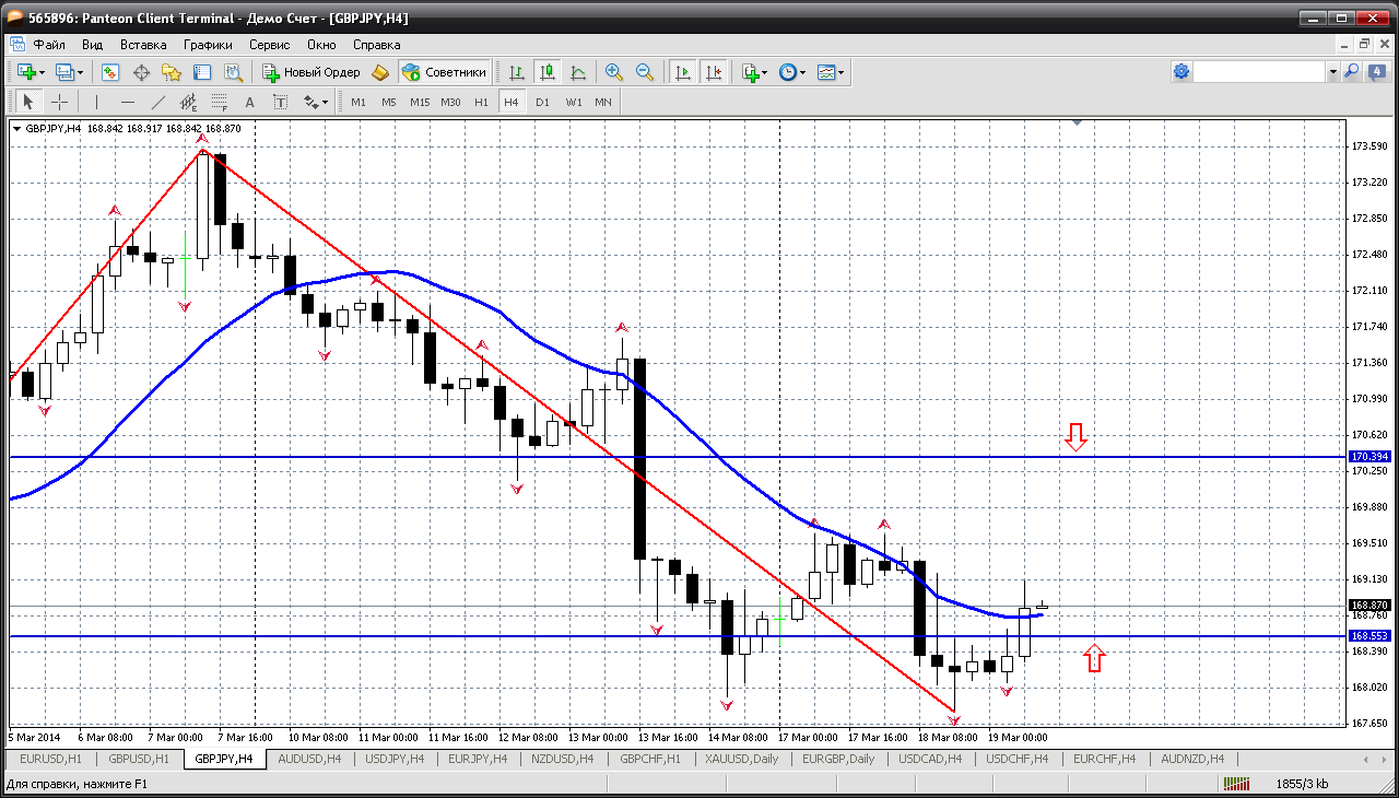 И евробакс тоже кое что хочет нам предложить. Но у этой пары есть одна нестыковка с фунтом. Хотя тоже выполнила неплохое снижение (протестировала уровень 1.3889). В принципе, это можно назвать как выбор основного направления на сегодняшний день. Сейчас цена выполняет коррекцию. И можно попробовать продать пару от 1.3923 (возврат к мувингу на Н1). Но так как цена сегодня не обновила лоу вчерашнего дня (это и есть нестыковка с фунтом) и вполне может пойти на тест трендовой линии. А это район 1.3960 примерно. Вот оттуда продажи значительно безопаснее будут. Прикрепленные файлы: